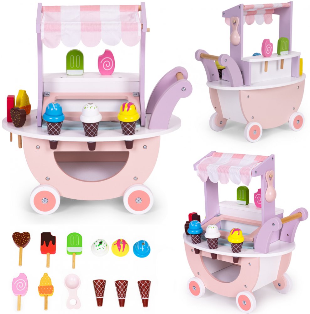 Eco Toys Dřevená pojízdná zmrzlina s doplňky růžová