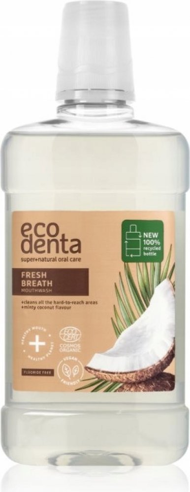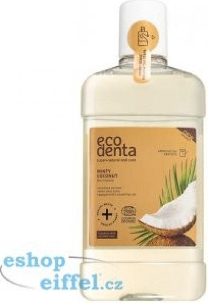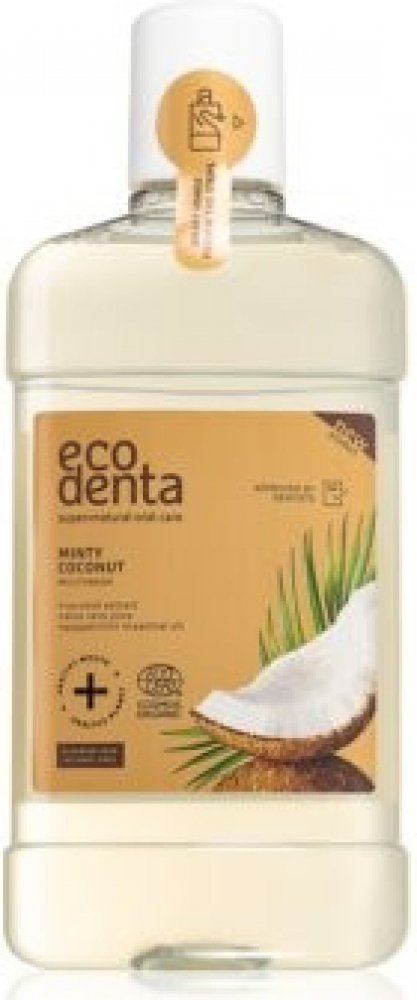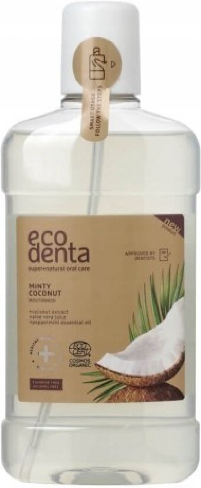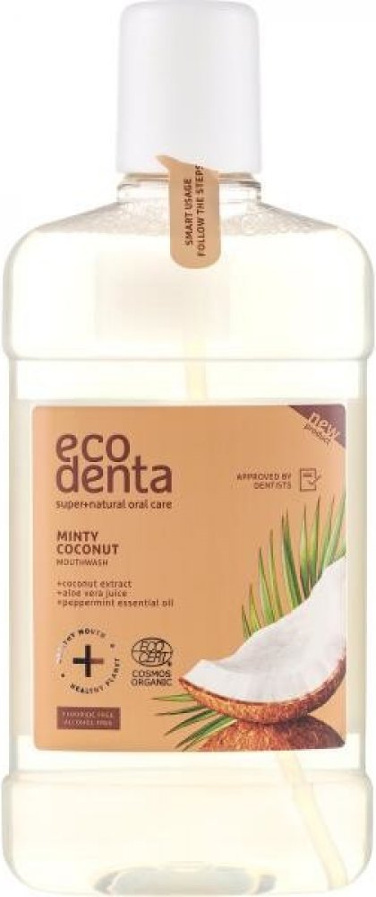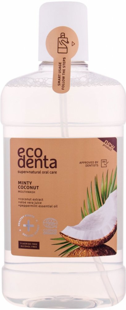 ECODENTA Organic Minty Coconut ústní voda byla speciálně vytvořena pro každodenní dodatečnou ochranu zubů. S příjemnou mátovou příchutí ochrání vaše zuby před plakem, kazem a zároveň vyčistí těžko přístupná místa, kam zubní kartáček nedosáhne. Ústní voda obsahuje 99% ekologických surovin nebo surovin přírodního původu.