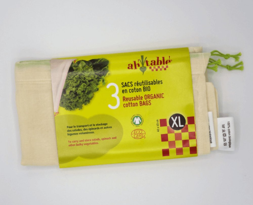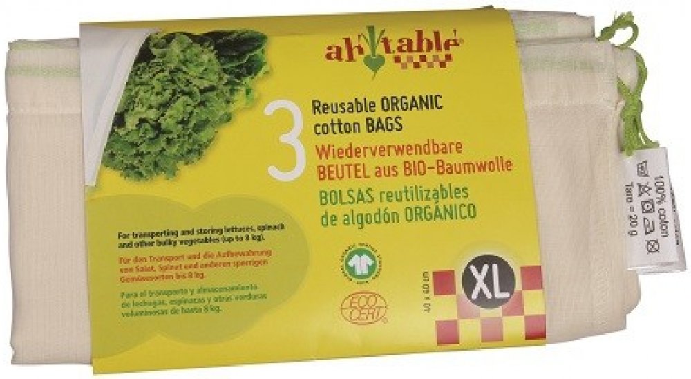 Ecodis Sáčky z biobavlny XL 40x40 cm, 3 ks Ideální sáčky pro nákupy a skladování potravin pro vaši domácnost, která chce omezit používání plastů. Rozměry: 40 x 40 cm Nosnost: až 3 kg na sáček Počet kusů v balení: 3 ks Váha 1 sáčku: asi 18 gramů Složení: 100 % bio bavlna - struktura a hustota plátna umožňuje skladovat i drobné produkty jako mák - prodyšné - jsou průsvitné, lze je tedy použít i při ...