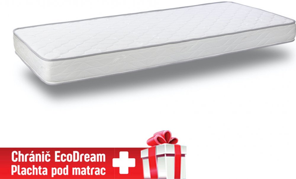 Matrace EcoDream je určen pro občasné používání (chaty, internáty, ubytovací zařízení) jakož i běžné používání (zejména pro děti). Jádro matrace tvoří tužší DreamPUR pěna s ortopedickými vlastnostmi. Matrace poskytuje kvalitní oporu páteři a svalům zajišťuje dostatečnou relaxaci.