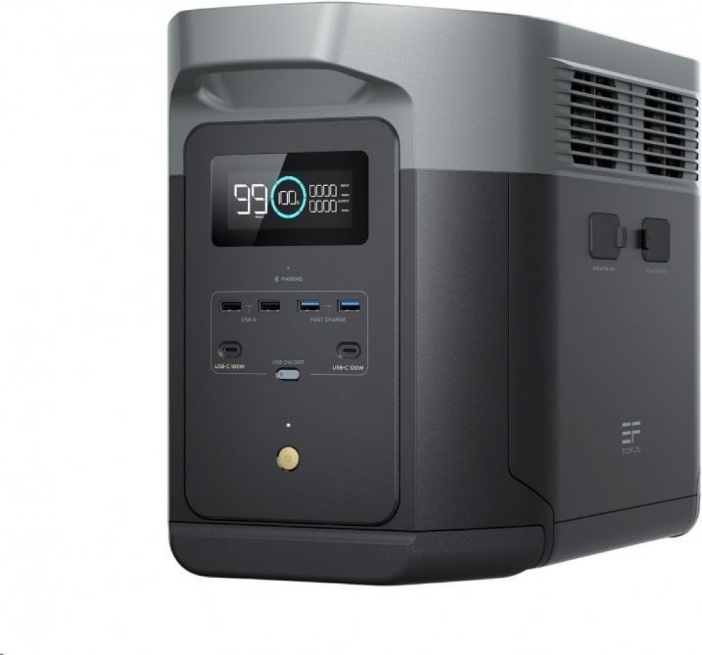 Druhá generace bateriové stanice DELTA 2 Max si navenek uchovává stejný design jako její předchůdce, uvnitř však dochází k revoluci. Bateriové LFP (LiFePO4) články nahradily původní NMC a mimořádně tak prodloužily životnost elektrocentrály. Dva na sobě nezávislé solární vstupy o výkonu 500 Wp vám umožňují dobíjet bateriovou stanici pomocí slunce bleskovou rychlostí, a když zrovna nesvítí, dobijete ji z AC zásuvky už za 81 minut. S kapacitou přesahující 2 kWh a AC výkonem 2400 W budete jen těžko hledat spotřebič, který by stanice nedokázala napájet. Rozsáhlá 5letá záruka už je pouhou třešničkou na dortu.