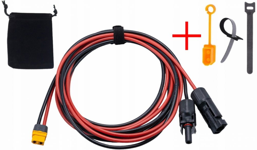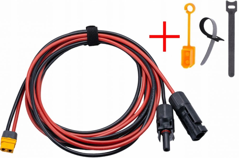 - Nabíjecí kabel EcoFlow Solar to XT60 (3,5 m) umožňuje připojit přenosnou elektrárnu EcoFlow k solárnímu panelu.