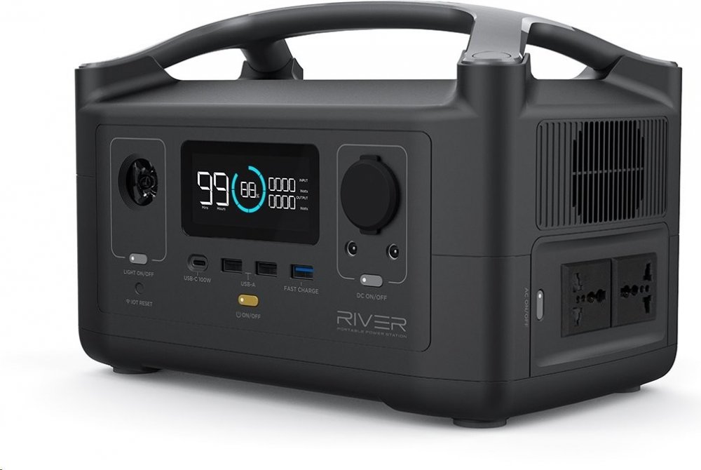 Přenosná nabíjecí stanice EcoFlow River 600 v mezinárodní verzi funguje stejně jako ostatní "bateriové stanice EcoFlow":https://dronpro.cz/nabijeci-stanice-ecoflow na bázi Li-Ion baterie. Má kapacitu 288 Wh/ 80,000 MAh. K dispozici je několik výstupů: 3.6V výstup, USB-A bez QC3,0, USB-A s QC, USB-C, AC a 12V autozásuvka a vstup DC. S příkonem 600 W se nabíjí solárním panelem nebo trafem z autozapa...