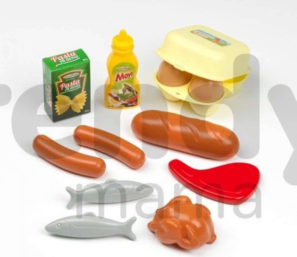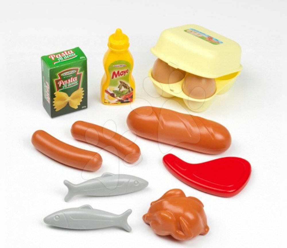 Dětské potraviny v síťce 100% Chef tvoří sadu doplňků do dětské kuchyňky. Sada potravin Écoiffier je vhodná pro děti od 18 měsíců. V síťce se nachází 12 kusů potravin, ke kterým patří bagetka, párky, ryby, kuřátko, majonéza, vajíčka, těstoviny a steak. Souprava potravin pro děti potěší každého malého kuchaře, protože s ní bdue hra na vaření ještě zábavnější.