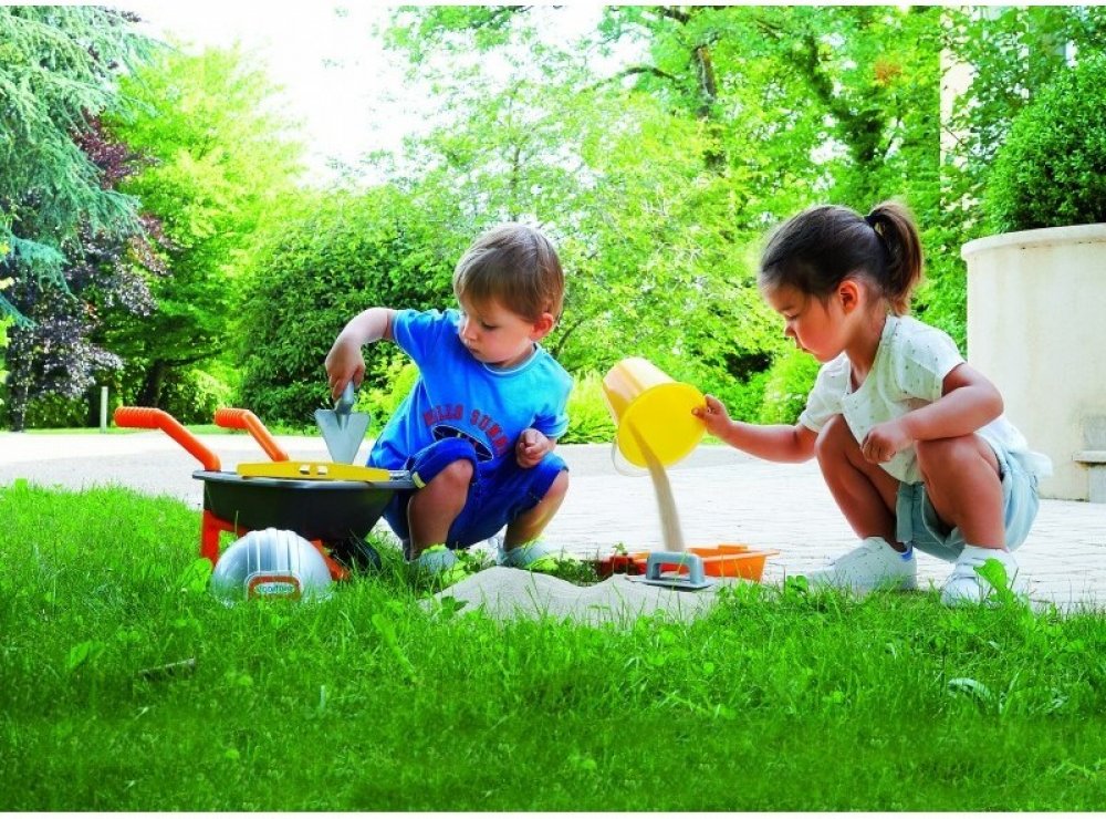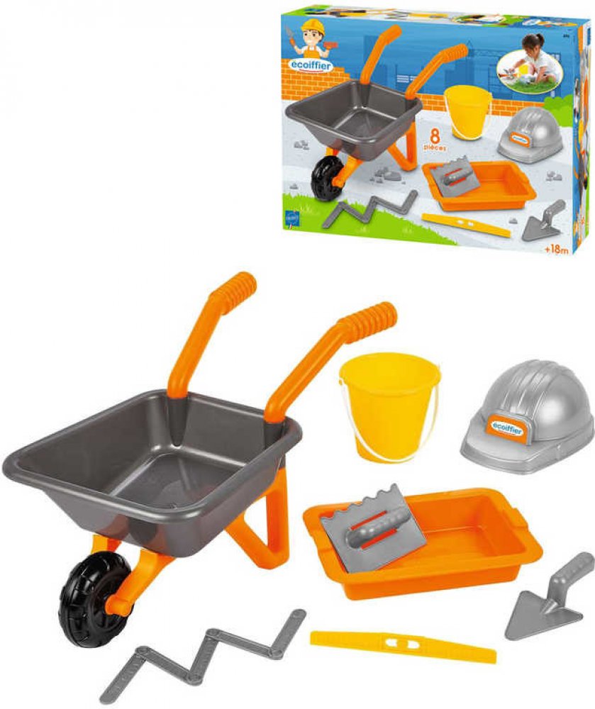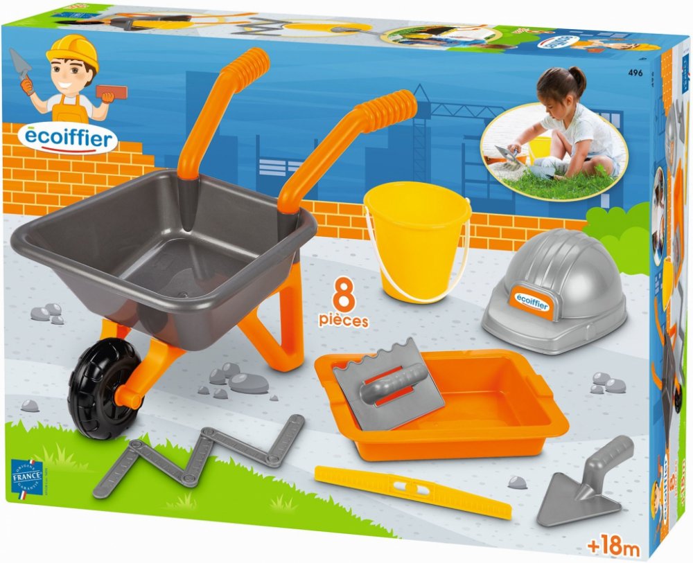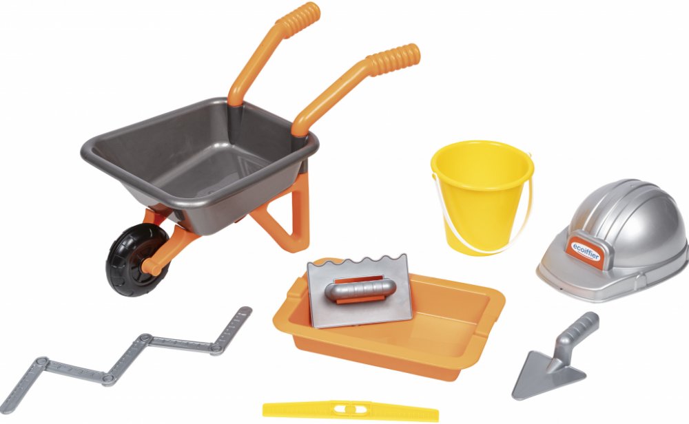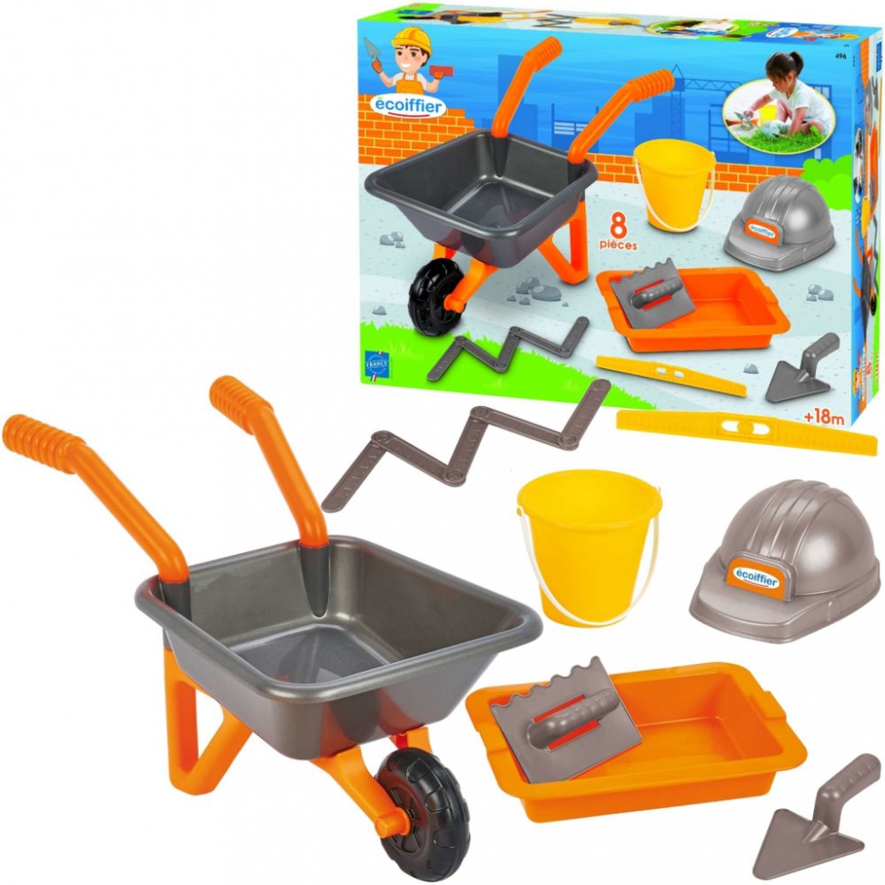 Écoiffier zednické kolečko The Builder Kit s přilbou a pracovním nářadím