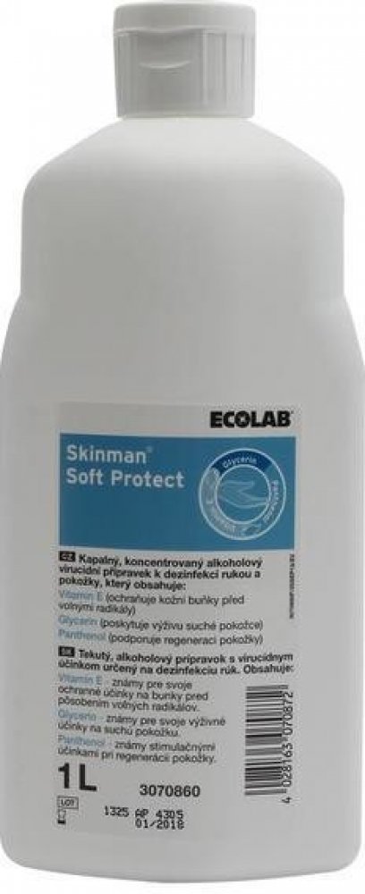 SKINMAN SOFT PROTECT je dezinfekční přípravek na ruce s plnou virucidní účinností. Tekutá forma obsahuje složky, které chrání pokožku: vitamín E, panthenol a glycerin. Pokožka se regeneruje a je intenzivně vyživována. Tato nová receptura byla speciálně vyvinutá pro opakovanou a častou dezinfekci pokožky rukou, vhodná zejména pro pracovníky ve zdravotnictví.SKINMAN SOFT PROTECT je deklarován jako b...