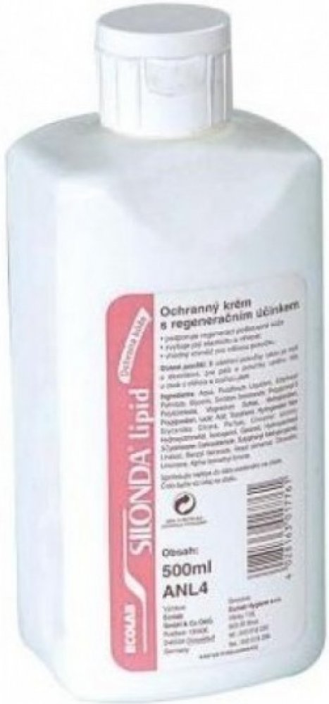 SILONDA LIPID je vhodná pro zvláště namáhanou pokožku, např. u lékařského a zdravotnického personálu, který opakovaně namáhá pokožku rukou při častém mytí a dezinfekci, všude tam, kde je třeba chránit citlivou pokožku osob, které vyžadují mimořádnou ochranu a péči. K ošetření rukou i celého těla u osob s citlivou pokožkou, pro seniory.SILONDA LIPID doplňuje pokožce její přirozenou vlhkost a vláčno...