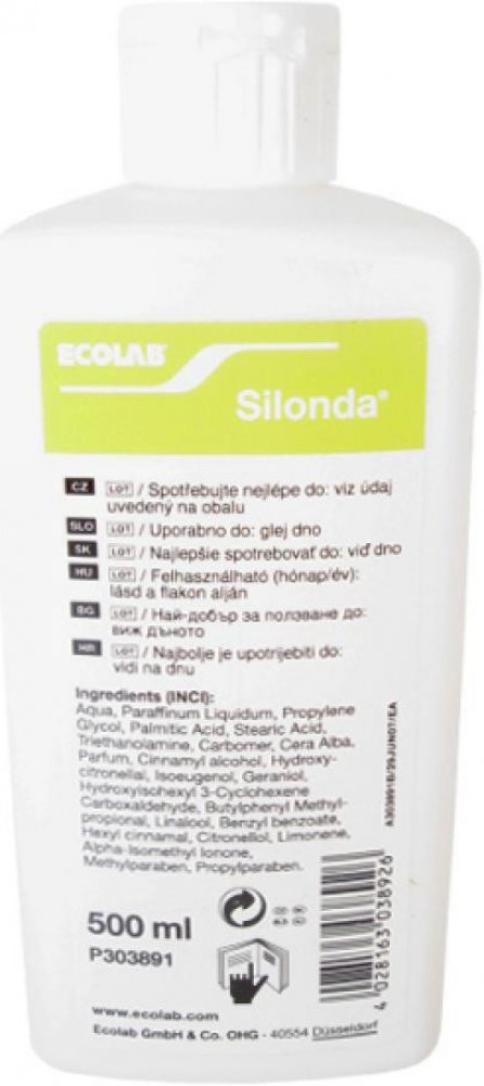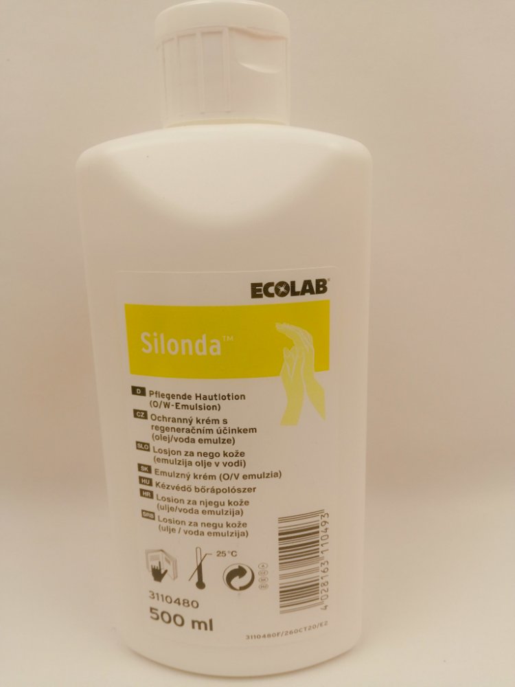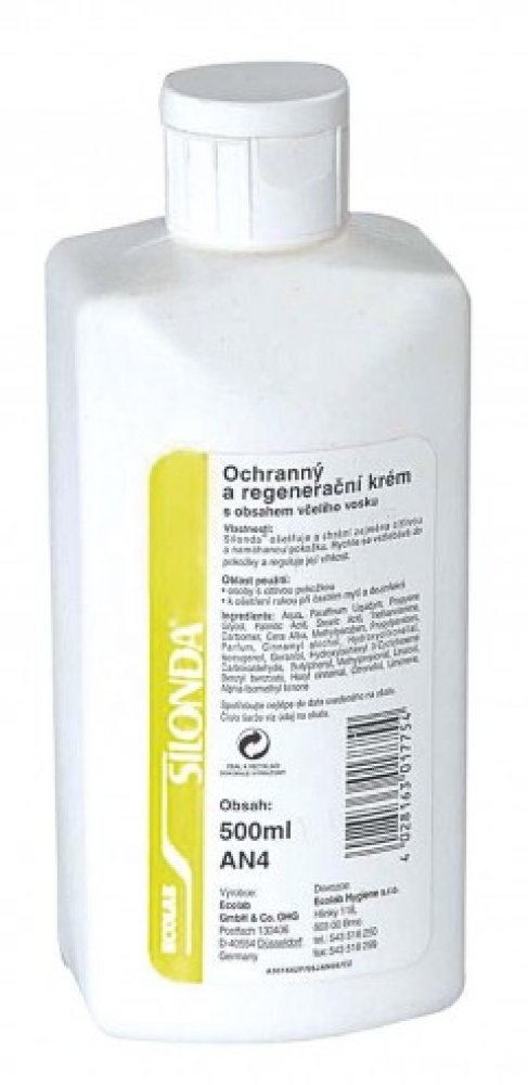 Silonda ochranný krém je regenerační a ochranný tekutý krém s obsahem včelího vosku. Ošetřuje a chrání zejména citlivou a namáhanou pokožku. Rychle se vstřebává do pokožky a reguluje její vlhkost. Vhodné pro ošetření pokožky rukou i celého těla, při častém mytí a dezinfekci rukou, či jako pracovní pomůcka k ochraně pokožky rukou. Vhodné i u osob s citlivou pokožkou.