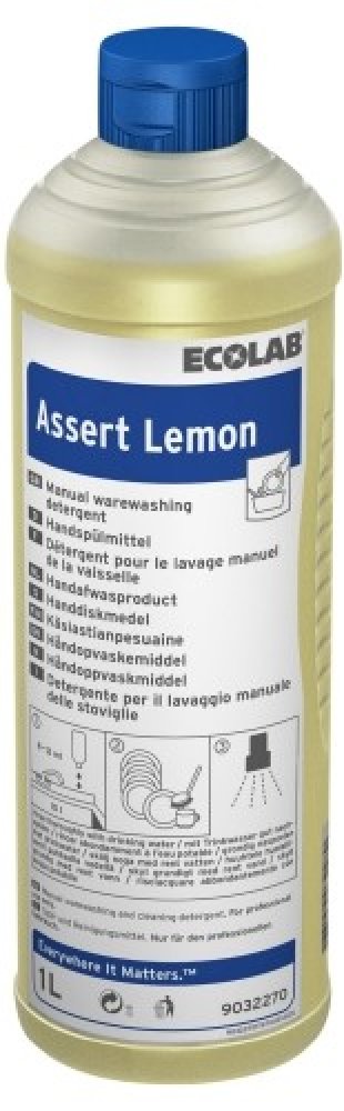 Tekutý jar na nádobí Assert Lemon 1l Koncentrovaný přípravek pro ruční mytí nádobí se svěží citrónovou vůní. Je vhodný pro mytí hrnců, pánví, porcelánu, skla a veškerých omyvatelných předmětů a ploch. Šetrný vůči pokožce rukou. Vysoký obsah aktivních látek pro vynikající výsledky mytí, univerzální použití v kuchyňských provozech, vynikající výsledky mytí při nízkých provozních nákladech.