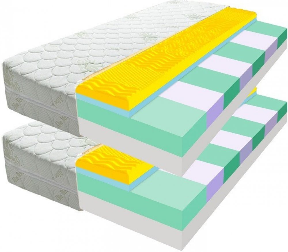 Sendvičová masážní matrace KONSUL 18 cm AKCE 1+1 Oblíbená sendvičová matrace s paměťovou pěnou vyrobená z kvalitních pěn. Matrace, která vás stabilně podepře a zároveň se na ní cítíte jako v bavlnce. Složení matrace: Profil. MEMORY, studená pěna HR Kaltschaum, PUR-pěna T30/38, PUR-pěna T25/40 Charakteristika produktu: 7 zón vysoce kvalitní paměťová pěny s technologií profiledFOAM zajišťuje správné uložení všech křivek těla vrstva studené pěna HR KALTSCHAUM, které zajišťuje větší komfort a pohodlí jádro matrace tvoři 7-zónový systém ze studené pěny HR KALTSCHAUM a polyuretanové pěny T30/38 ,který ideálně se přizpůsobí Vašim křivkám a uvolní svalstvo během spánku spodní vrstvu tvoří kvalitní tepelně zpracovaná PUR pěna T25, která poskytuje dostatečnou pevnost a odolnost matrace odolný standardně prošívaný potah je hypoalergenní s výtažky Aloe Vera, má všitý zip, matrace je oboustranná a obě strany jsou jiné. Jedna má masážní vlastnosti, zatímco druha je hladká. Střední tuhost matrace typu H3 patří do kategorie matrací vhodných k prevenci a předcházení bolesti zad . Pro výrobu matrace jsme použili nejmodernější technologie. Matrace řady profiledFOAM jsou charakterizované výjimečným pohodlí, trvanlivosti a také potřebným větráním. Pro jejich výrobu používáme jen ty nejkvalitnější suroviny, spojené ve vhodných podmínkách bezpečným vodivým lepidlem. Optimální přizpůsobení polyuretanových pěn je tajemstvím dobrého matrace, a v souladu s nejnovějšími standardy spánku jsou doporučené lékaři a odborníky. Strany matrace se liší použitými technologiemi a tvrdosti. Vy se rozhodnete, zda chcete večer užít vlastnosti profilů masáže a paměťové pěny, nebo si raději spát na rovném povrchu . Jedná se o univerzálnost tohoto výrobku. Nezávisle na použité straně, po celou dobu matrace zabezpečuje ideální polohu po čas Vašeho spánku a odpovídající obrys těla při odpočinku. Všechny tyto vlastnosti dělají matraci skvělou alternativou pružinových matraci, při zachování atraktivní ceny. Způsob balení matrace - v plném rozměru (nevakuovaná), ihned použitelná. Záruka 24 měsíce. Potah Matrace je opatřena moderním vzdušným potahem, který zamezuje výskytu plísní a udržuje matraci čistou. Antialergický potah je pro vyšší komfort prošitý tvarovaným dutým vláknem (umožňujícím rychlý odvod potu). Potah lze prát na 40 °C při nízkých otáčkách bez následného žehlení nebo sušení v sušičce. Pro vyšší hygienu lůžka a snazší údržbu matrace doporučujeme používat chránič matrace . Na dezinfekce matrace máme v nabídce GUASAN SPRAY 0,5 L DEZINFEKCE NA POVRCHY A PLOCHY . Je charakteristický silným a dlouhotrvajícím antibakteriálním, antivirovým a protiplísňovým účinkem bez negativních vlivů na jakékoli ošetřované materiály (sklo, dřevo, kovy, plast, papír, textilie, gumu). Barevné rozlišení pěn se používá pouze proto, aby se jednotlivé pěny nezaměnily ve výrobě. Barva pěny nemá vliv na vlastnosti matrace. Uvedené obrázky na našem eshopu jsou ilustrační, barvy pěn se ve skutečnosti liší. Upozorňujeme, že výrobní tolerance matrací je +/- 1% u délky a šířky a +/- 8% u výšky matrace. Jaký postelový rošt pod matraci? Laťový rošt je výhodný svou jednoduchostí a přirozenou pružností. Poskytuje rovnoměrnou podporu a prodyšnost matrace. Lamelový rošt je flexibilní a přizpůsobivý. Lamely se pohybují nezávisle na sobě a umožňují individuální nastavení tuhosti