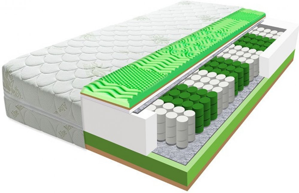 Taštičková matrace POSEIDON 22 cm Aloe VeraMatrace POSEIDON má charakteristické jádro z ocelových pružin, zabalených do tzv. taštiček. Taštičky jsou vyrobené z textilie a připomínají malé sáčky. Každá pružina, vyrobená technologií extendedHard, je samostatně obalena tímto textilním sáčkem. Pružiny tak nejsou spolu spojeny napevno, proto jsou vzdušné, hygienické a vhodné i do vlhčího prostředí st...
