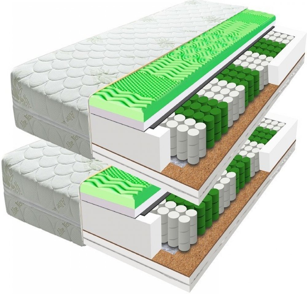 Taštičková matrace POSEJDON 22 cm. AKCE 1+1 Složení matrace POSEJDON 22 cm: Profilovaná PUR-pěna PUR-pěna, plst 0.5 cm taštičkové jadro, plst 0.5 cm KOKOS PUR-pěna Charakteristika produktu Taštičková matrace POSEJDON 22 cm: 7 anatomických masážních zón profilované pěny skvěle vyvažuje rozložení těla po celé ložní ploše vrstva PUR-pěny, které zajišťuje větší komfort a pohodlí Taštičkové pružiny, každá samostatně potažená vysoce elastickým materiálem, celkem více než 289 pružin / m2 vytvořeno technologii extendedHard Filc, umístněný mezí taštičkovým jádrem a pěnou, zvyšuje pevnost matrace a také prodlužuje její životnost. Spodní vrstvu tvoří kvalitní tepelně zpracovaná PUR pěna T25, která poskytuje dostatečnou pevnost a odolnost matrace Vrstva z prolatexovaného kokosu máji antiseptické a antialergické vlastnosti, zvyšuji komfort spánku tím, že poskytuji dostatečnou ventilaci a prodlužuji životnost matrace, Odolný standardně prošívaný potah je hypoalergenní s výtažky Aloe Vera, má všitý zip, Matrace je oboustranná a obě strany jsou jiné. Jedna má masážní vlastnosti, zatímco druha je hladká. Kromě toho obě strany se liší v tvrdosti, což přidává matraci více univerzálnosti 7 anatomických masážních zón profilované pěny skvěle vyvažuje rozložení těla po celé ložní ploše. Profilovaná pěna zajišťuje matraci stabilitu a dobrou pružnost, přizpůsobí se každému pohybu a neklidné pohyby utlumuje. Během spánku poskytne tělu maximální pohodlí. Nezpůsobuje otlaky ani proleženiny. Taštičky jsou vyrobené z textilie a připomínají malé sáčky. Každá pružina, vyrobená technologií extendedHard, je samostatně obalena tímto textilním sáčkem. Pružiny tak nejsou spolu spojeny napevno, proto jsou vzdušné, hygienické a vhodné i do vlhčího prostředí starší zástavby. Deska z přírodních kokosových vláken umístěná z jedné strany nad taštičkovým jádrem řadí matraci do kategorie středně tuhých až tuhých matrací, kokosová vlákna jsou ošetřena přírodním latexem, matrace je proto velmi odolná proti plísním, houbám a bakteriím. Taštičkovou matraci doporučujeme umístit na pevnou desku nebo laťový rošt s mezery do 6 cm. Způsob balení matrace - v plném rozměru (nevakuovaná), ihned použitelná. Záruka 24 měsíce. Potah matrace POSEJDON 22 cm Potah matrace POSEJDON 22 cm je navržen tak, aby poskytoval maximální komfort a hygienu pro váš spánek. Tento moderní potah je vybaven výtažky z Aloe Vera , které nejenže zajišťují svěží a příjemné prostředí, ale také přirozeně zamezují výskytu plísní a bakterií . Díky svým antialergickým vlastnostem je potah ideální volbou pro alergiky a osoby s citlivou pokožkou, protože účinně chrání před alergeny a přispívá k udržení čisté a zdravé matrace . Potah umožňuje rychlý odvod potu a pomáhá udržet matraci suchou a svěží po celou noc. To zajišťuje příjemný a zdravý spánek, protože potah aktivně odvádí vlhkost, což zabraňuje vzniku nepříjemných pachů a plísní. Pokyny k údržbě : Potah lze prát na 40 °C , což je optimální teplota pro udržení hygieny a dlouhé životnosti potahu. Praní doporučujeme provádět při nízkých otáčkách , aby se potah nepoškodil a zachoval si své vlastnosti. Potah není třeba žehlit, což šetří čas a zjednodušuje údržbu. Nesušte v sušičce – potah si zachovává svou strukturu a kvalitu, pokud je sušen volně na vzduchu. Díky těmto vlastnostem je potah matrace POSEJDON ideální volbou pro každého, kdo hledá kombinaci komfortu, hygieny a snadné údržby . Pro vyšší hygienu lůžka a snazší údržbu matrace doporučujeme používat chránič matrace . Na dezinfekce matrace máme v nabídce GUASAN SPRAY 0,5 L DEZINFEKCE NA POVRCHY A PLOCHY. Je charakteristický silným a dlouhotrvajícím antibakteriálním, antivirovým a protiplísňovým účinkem bez negativních vlivů na jakékoli ošetřované materiály (sklo, dřevo, kovy, plast, papír, textilie, gumu).
