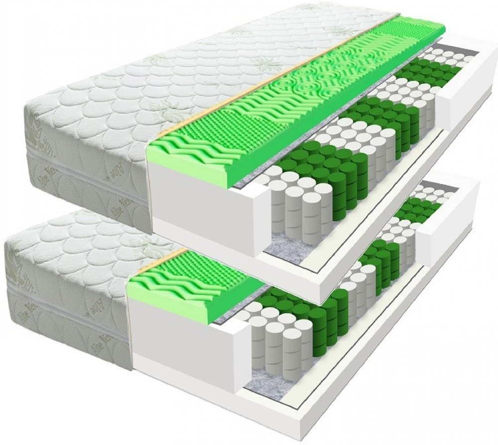 Taštičková matrace ZEUS Aloe Vera 21 cm. AKCE 1+1 Taštičková matrace ZEUS Aloe Vera s výškou 21 cm je ideální volbou pro ty, kteří hledají. Díky individuálně uloženým pružinám poskytuje tato matrace skvělou podporu těla, což minimalizuje přenos pohybu a zajišťuje klidný spánek. Aloe Vera v potahu přispívá k příjemnému pocitu na pokožce a má přirozené antibakteriální vlastnosti. Zvolte matraci ZEU...