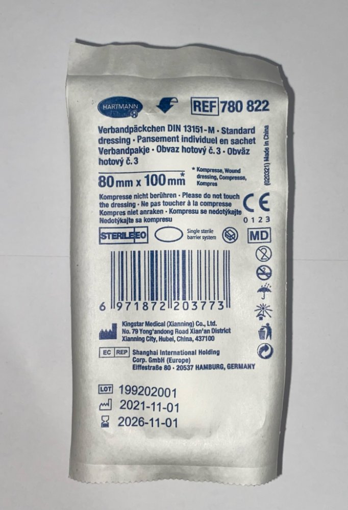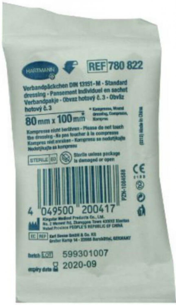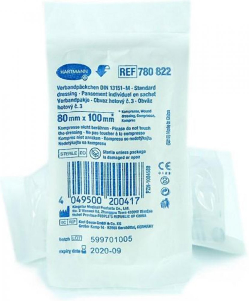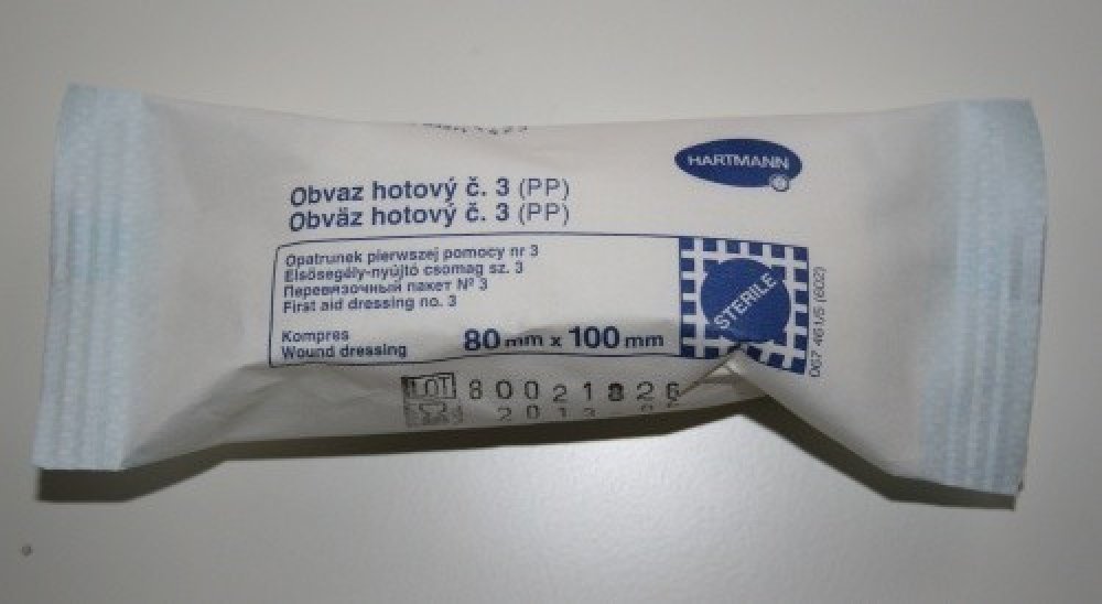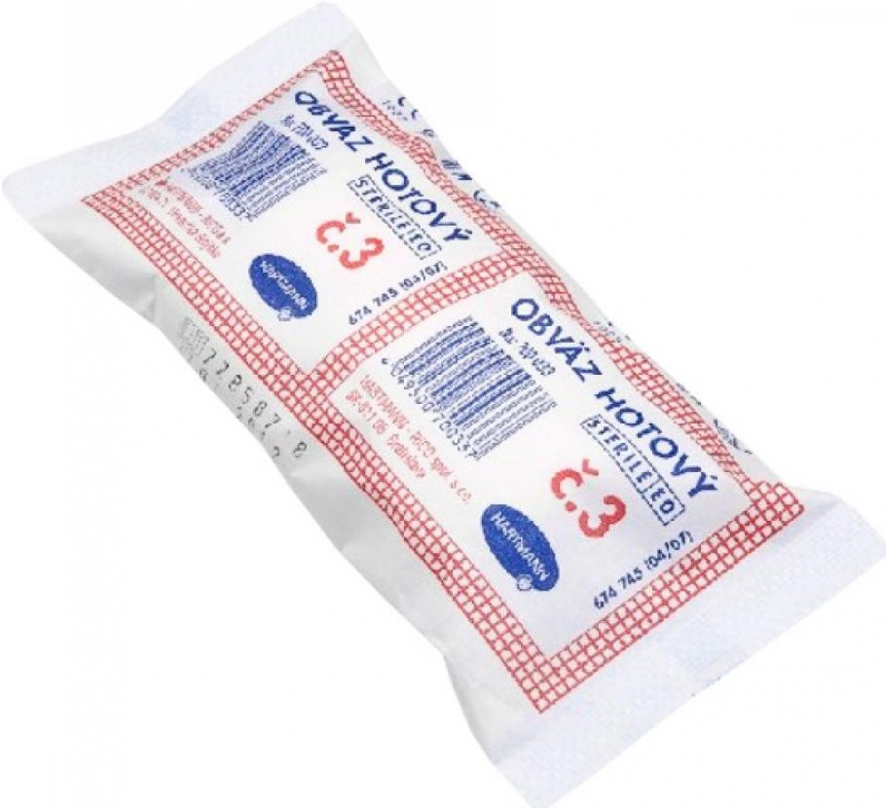 Obvaz pro předlékařskou pomoc s kompresem - Hotový a sterilní obvaz je složen z hydrofilního obinadla a jednoho pevně připevněného savého kompresu (Zetuvit E) pro ošetření otevřených ran. Snadno a rychle použitelné při první předlékařské pomoci na ošetření drobných i rozsáhlých poranění.