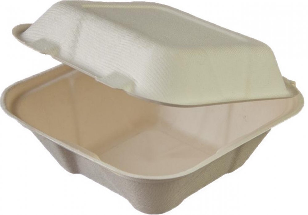 Tyto boxy na hamburgery z cukrové třtiny 17,8x17,8x9,5 cm jsou vyrobeny z jediné ingredience.
