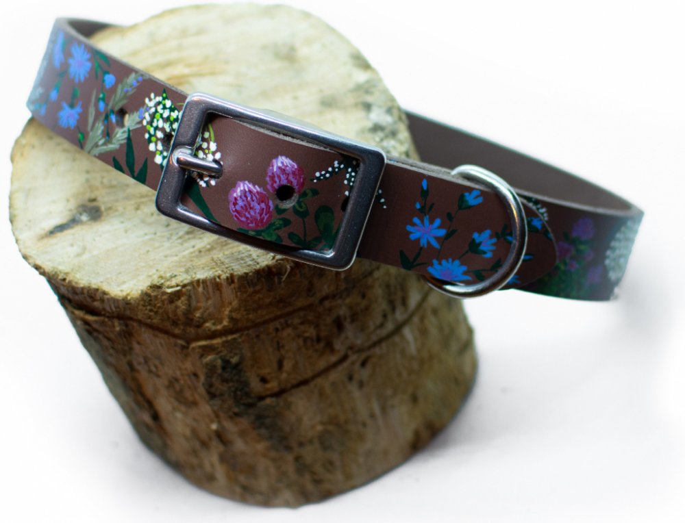 Tenhle ručně malovaný obojek je i s láskou ušitý v malebné vesničce na Moravě. Malovala ho babička, která měla obrovskou radost, že pracuji vědomě s bylinkami a květy.