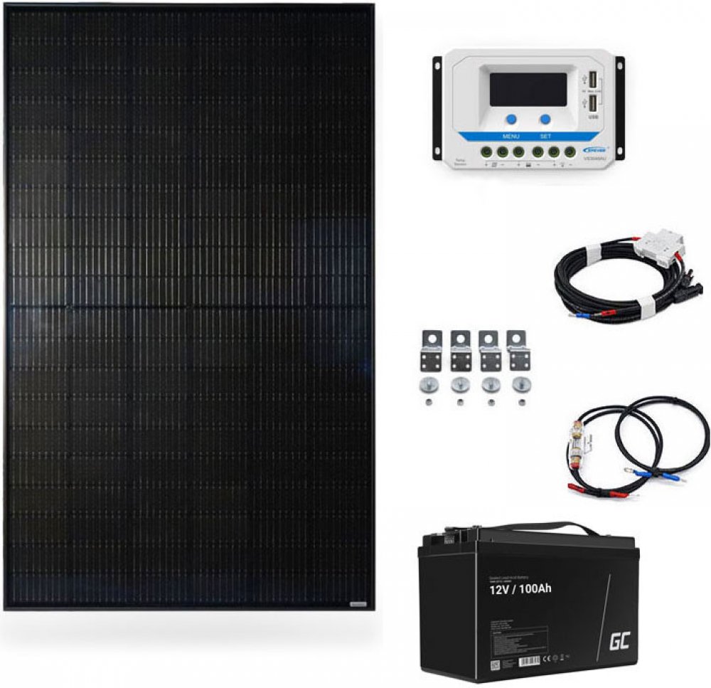 Systém obsahuje1x Solární panel Solarfam 240Wp1x Regulátor nabíjení PWM EPsolar 12-24V 20A 2xUSB1x Bezúdržbová baterie Green Cell AGM30 12V 100Ah VRLA1x Solární kabel 4mm² 10m s odpínačem PCF 10 DC1x 2 x 2m bateriový kabel 4mm² s 30A AGU pojistkou1x Montážní příslušenství - Z držáky 4ks