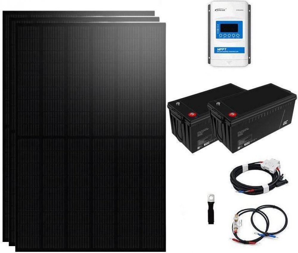 Solární ostrovní systém 1,29kWp 24V 200Ah Systém je navržen pro víkednové chatky na horách nebo zahradách Prvotřídní komponenty Spolehlivá záloha energie Energetická soběstačnost Díky solárnímu systému, nebudete závislý od distribuční sítě. Jednoduchá instalace Obsahuje vše včetně montážního příslušenství a návodu k zapojení, pomocí kterého namontuje tento systém opravdu každý. Technická podpora Díky odborné technické podpoře se vám nestane, že byste měli s čímkoliv problém. Jak to funguje Solární ostrovní systém je ideální řešení pro všechny, kteří potřebují vyřešit solární systém na chatu, ale i karavan nebo obytný přívěs. Solární ostrovní systém zajistí napájení menších elektrických spotřebičů (chladnička, televizor, ...) nebo elektrického osvětlení. Pro napájení spotřebičů na 220V AC je třeba dokoupit měnič napětí + kabel. Takový fotovoltaický ostrovní systém zkrátka zabezpečí energii i na místech, kde není možnost připojení se do rozvodné sítě. Umožňuje také sledovat stav baterie, spotřebu energie a energetické zisky. Průměrná denní výroba energie v kWh v lednu cca 1380 Wh / den v Květnu cca 4660 Wh / den v Červenci cca 4975 Wh / den v září cca 3875 Wh / den v prosinci cca 1375 Wh / den Za celý rok dokáže systém vyrobit cca 1242 kWh. Vypočtený výkon je za předpokladu: orientace na jih / bez zastínění / se sklonem 35 stupňů Celkové množství vyrobené energie závisí také na vaší lokalitě. Pro výpočet použijte: Fotovoltaický geografický systém Průměrná měsíční výroba energie v kWh Přehled instalovaných komponentov Solární panel monokrystalický Longi 435Wp Hi-MO X6 full black Model s výkonem 435 Wp je zárukou výkonu. Nabízí spolehlivou funkčnost jako v síťových systémech tak i v ostrovních aplikacích. Nízka degradace a vynikající výkon při vysokých teplotách a nepříznivých svetělných podmínek Vysoká účinnost až 22.3% díky pokročilé výrobní technologii Robustní hliníkový rám zajišťuje, aby moduly vydržely zatížení větrem až do 2400Pa a zatížení sněhem až 5400Pa Regulátor nabíjení MPPT EPsolar XDS2 XTRA-N G3 BLE 40A 150VDC Série MPPT regulátorů série XTRA-N je zárukou vysoké kvality a maximální výbavy pro ostrovní systémy s napětím panelů až 150V a max. nabíjecím proudem 40A. Vysoce kvalitní komponenty, zdokonalující výkon systému Automatické omezení nabíjecího výkonu a proudu Monitorujte a nastavujte parametry pomocí mobilního telefonu nebo PC Bezúdržbová gelová baterie Green Cell AGM33 12V 200Ah VRLA Bezúdržbová VRLA (Valve Regulated Lead Acid) technologie, dlouhá životnost a stabilita při vysokých teplotách okolí. Dobrá schopnost znovuobnovení po hlubokém vybití. Bezúdržbová technologie 600 nabíjecích cyklů při 50% hloubce vybití Jednoduchá instalace Schéma zapojení Zapojení je velmi jednoduché. Solární panel je připojen k regulátoru nabíjení, který se stará o správné dobíjení baterie. Jištění a konektory jsou předem zapojeny u nás. Systém obsahuje 3x Solární panel monokrystalický Longi 435Wp Hi-MO X6 full black 1x Regulátor nabíjení MPPT EPsolar XDS2 XTRA-N G3 BLE 40A 150VDC 1x Solární kabel 6mm2 10m s odpínačem PCF 10 DC 2x Bezúdržbová baterie Green Cell AGM33 12V 200Ah VRLA 1x Propojovací kabel průřez 50mm2 délka 33cm 2x 2m bateriový kabel 6mm2 s 40A AGU pojistkou