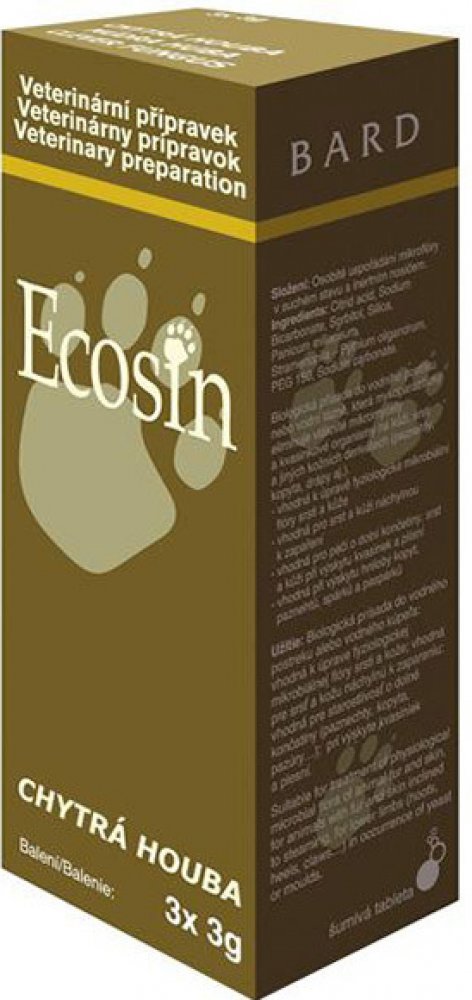 Ecosin Chytrá houba je inovativní veterinární přípravek ve formě biologické přísady, určený pro: