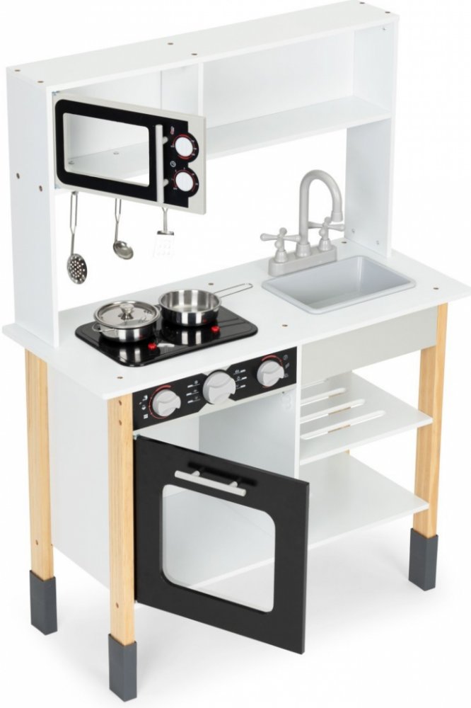 Díky ECOTOYS se děti budou moci cítit jako v opravdová kuchyně,a zábava z přípravy jídel pro celou rodinu nebude mít konce. Kuchyňka je vyrobena z odolných desek a dřevěných prvků,co jí dodává autentický ajedinečný vzhledjejí konstrukce nemá ostré hrany, takže je bezpečná pro děti.Nádherné barvy a věrná reprodukce mnoha detailů kuchyňky skvěle vypadá v dětském pokoji a přiláká každé dítě na dlouhé hodiny dobré zábavy.