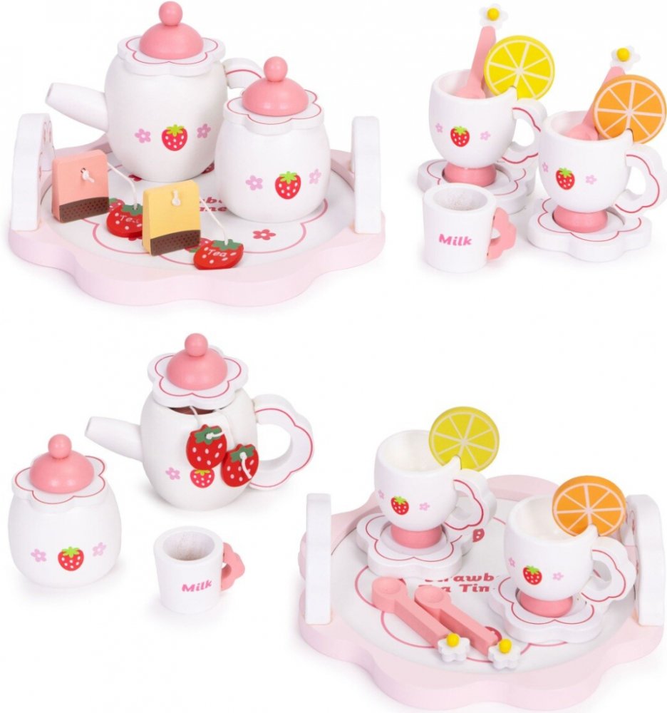 Dřevěná čajová sada ECOTOYS Vhodné pro děti od 3 let. Skvělý doplněk do dřevěné kuchyňky, dětského obchodu či kavárny. Vyrobeno z kvalitního přírodního dřeva. Obsahuje 14 krásných dílků pro realistickou hru. Roztomilý motiv jahůdek nadchne každou malo...