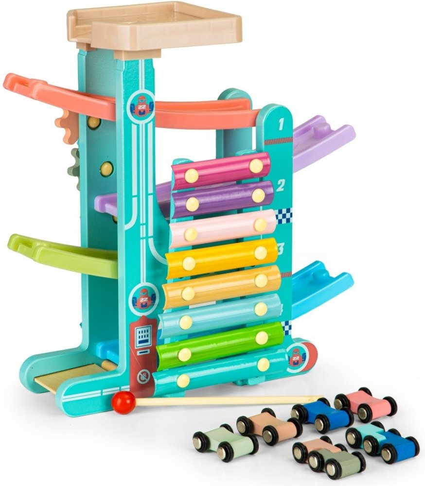ecotoys - Dřevěná dráha skluzavka + 6 aut + xylofon z kategorie DŮM A BYT | SKL od výrobce ecotoys DŘEVĚNÁ DRÁHA AUTÍČEK