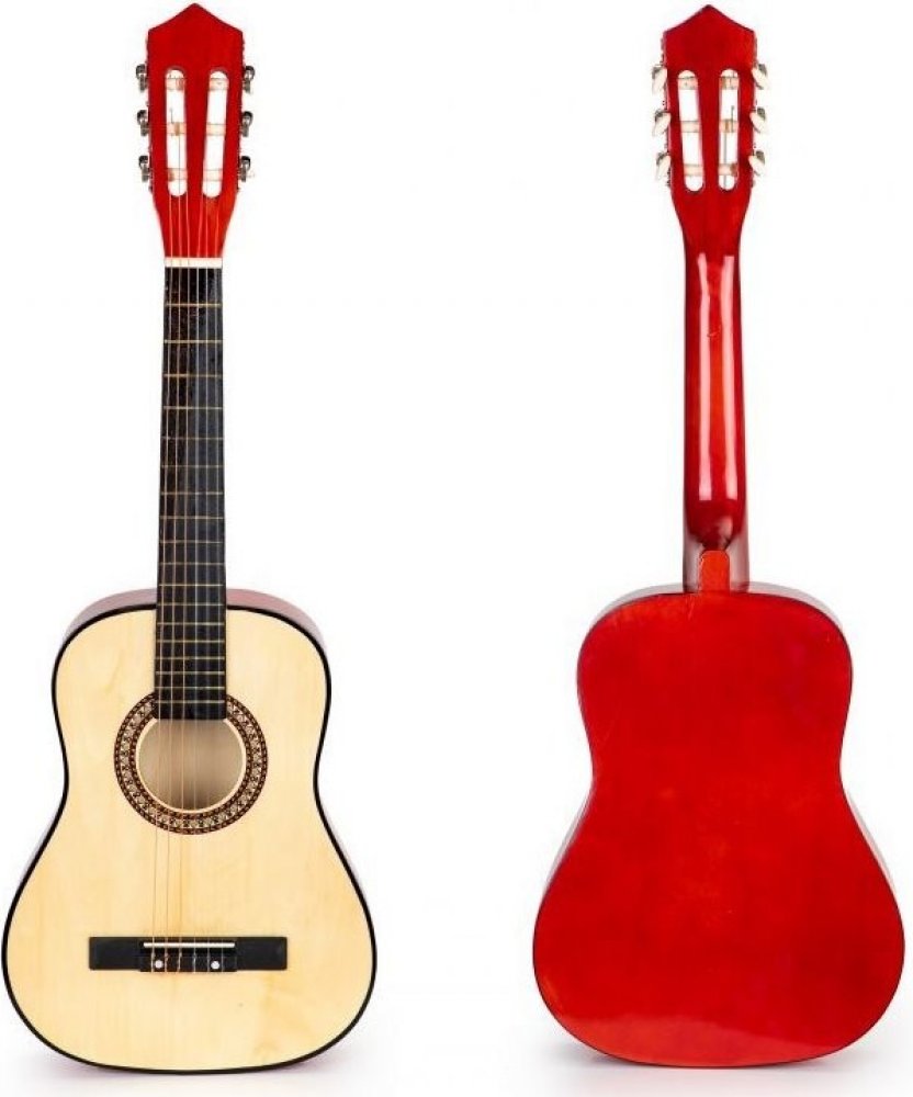 EcoToys dřevěná kytara 6 strun přírodní červená 86 cm