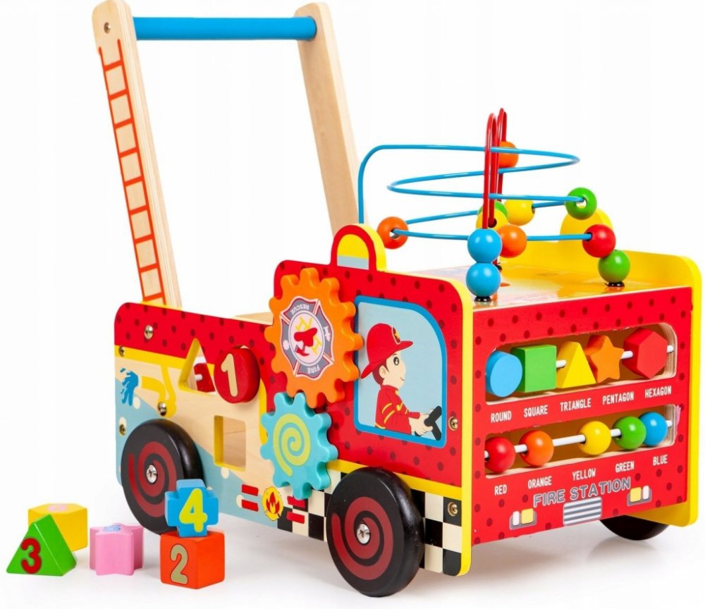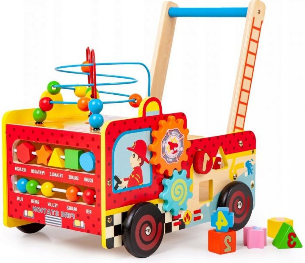 Takzvaný vzdělávací posunovač - velmi praktický hračka, díky které se naše dítě učí chodit, může být ideální volbou . Rozvíjí také motoriku dítěte, protože každá stěna odstrkovadla má zcela jinou funkčnost a charakter.< /p>