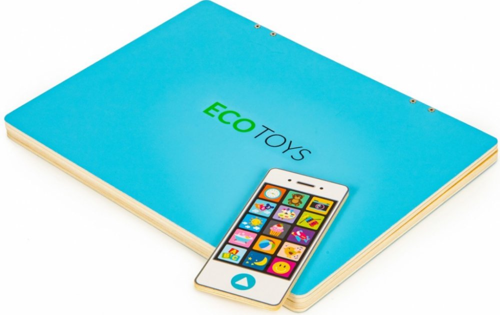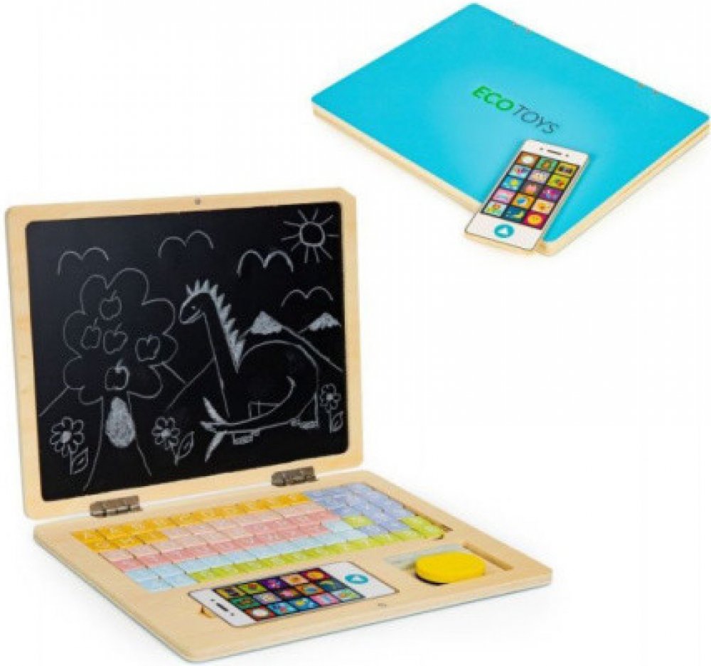 EcoToys Dřevěný notebook s magnetickým monitorem modrý