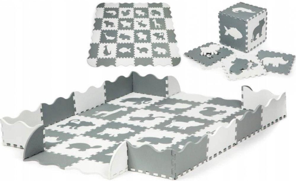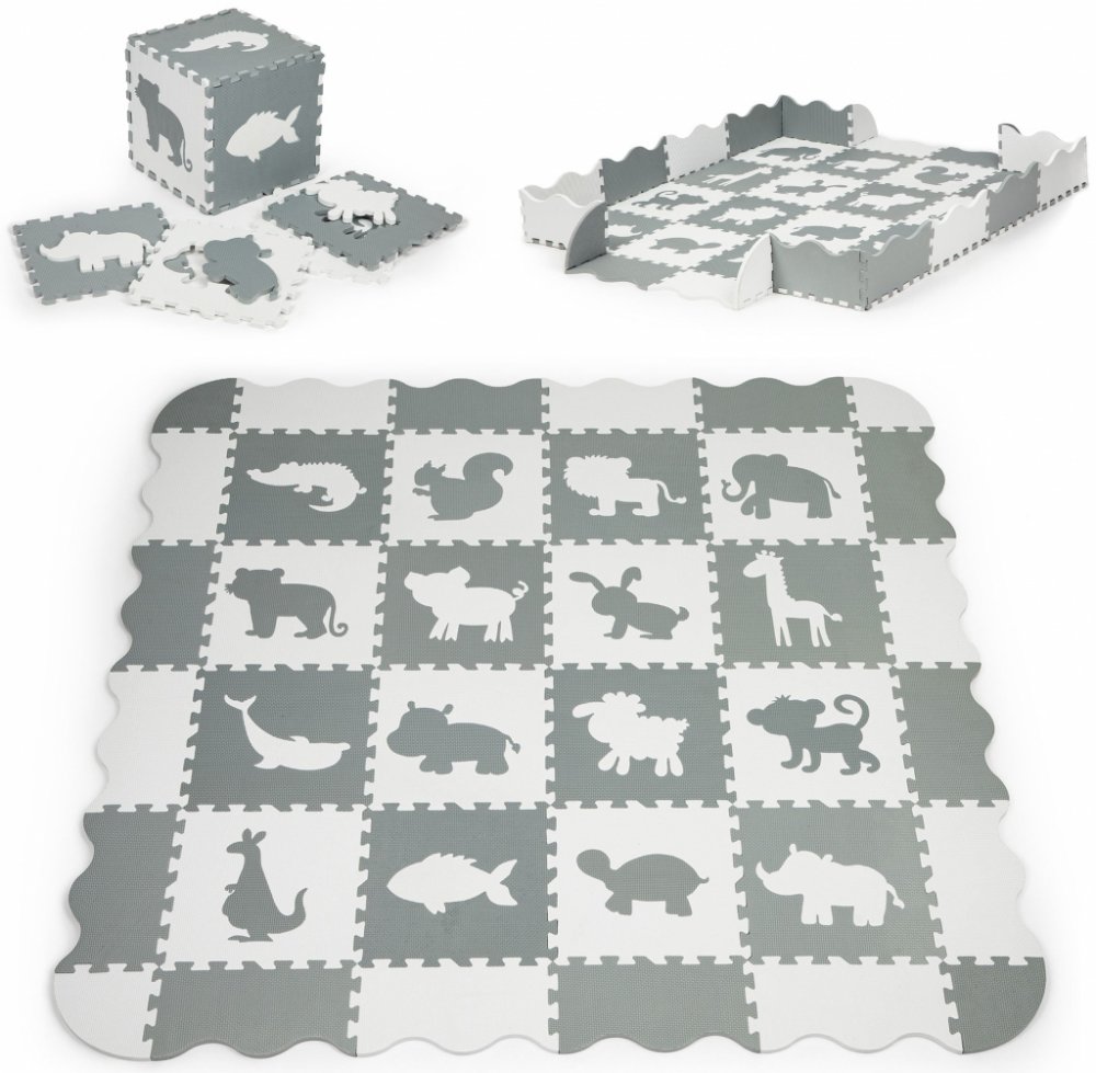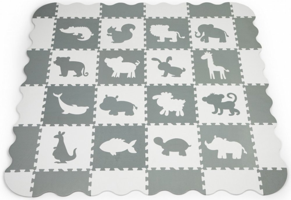 Ecotoys Pěnová puzzle podložka Animals šedá 36 kusů