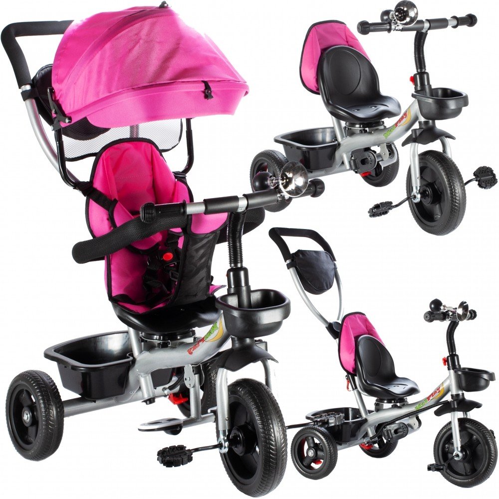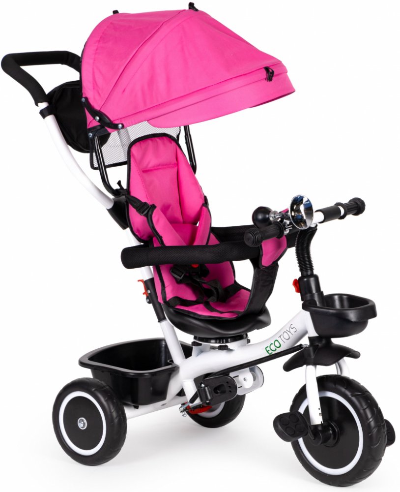 Dětská tříkolka MalPlay S360 s otočným sedadlem je určena pro děti od 2 do 5 let. Vybavena praktickou odnímatelnou stříškou proti slunci a dešti. V zadní části je umístěn velký koš na hračky, v přední části potom menší košík. Tříkolka má pevnou ocelovou konstrukci a odolná EVA kola usazená v pevných plastových ráfcích. Madlo a tříbodové bezpečnostní pásy zabraňují vypadnutí dítěte z kočárku. Na ří...