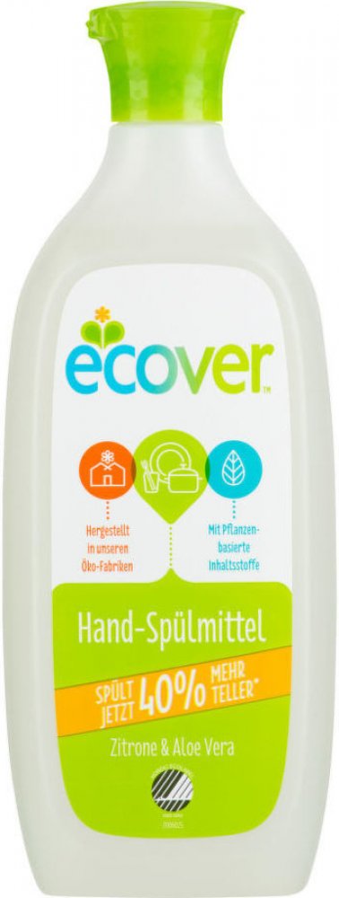 Přípravek na mytí nádobí je stejně jako všechny výrobky od firmy ECOVER vyrobený na rostlinné a minerální bázi. Neobsahuje ropné složky, je biodegradabilní a netestovaný na zvířatech. Je balený ve 100% recyklovatelných obalech včetně uzávěrů.
