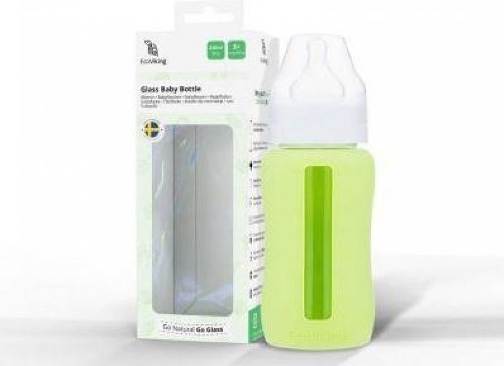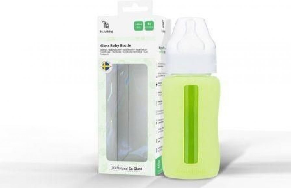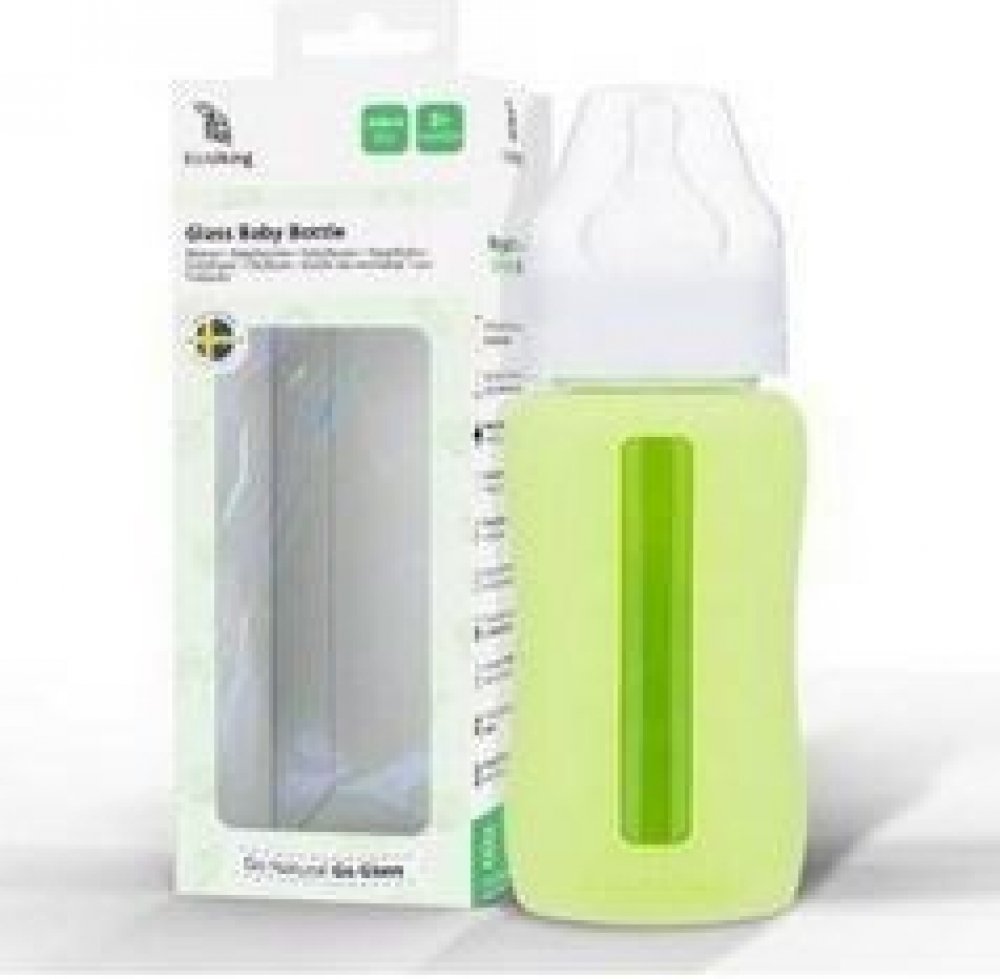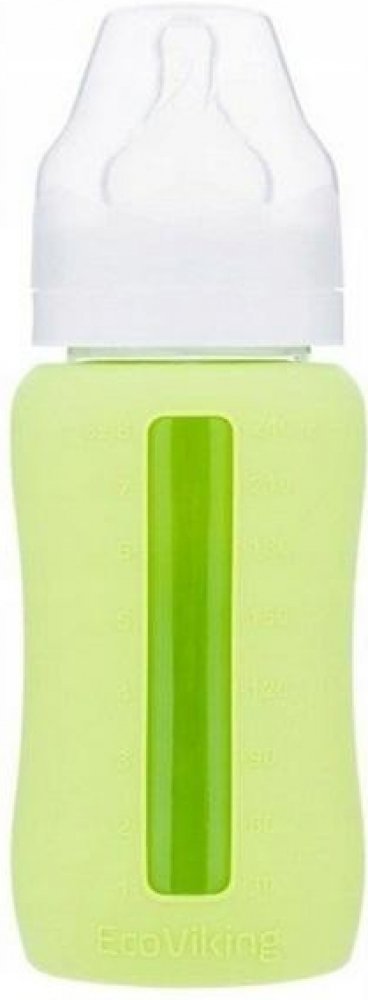 EcoViking Kojenecké láhev skleněná široká silikonový obal zelený hráškový 240ml