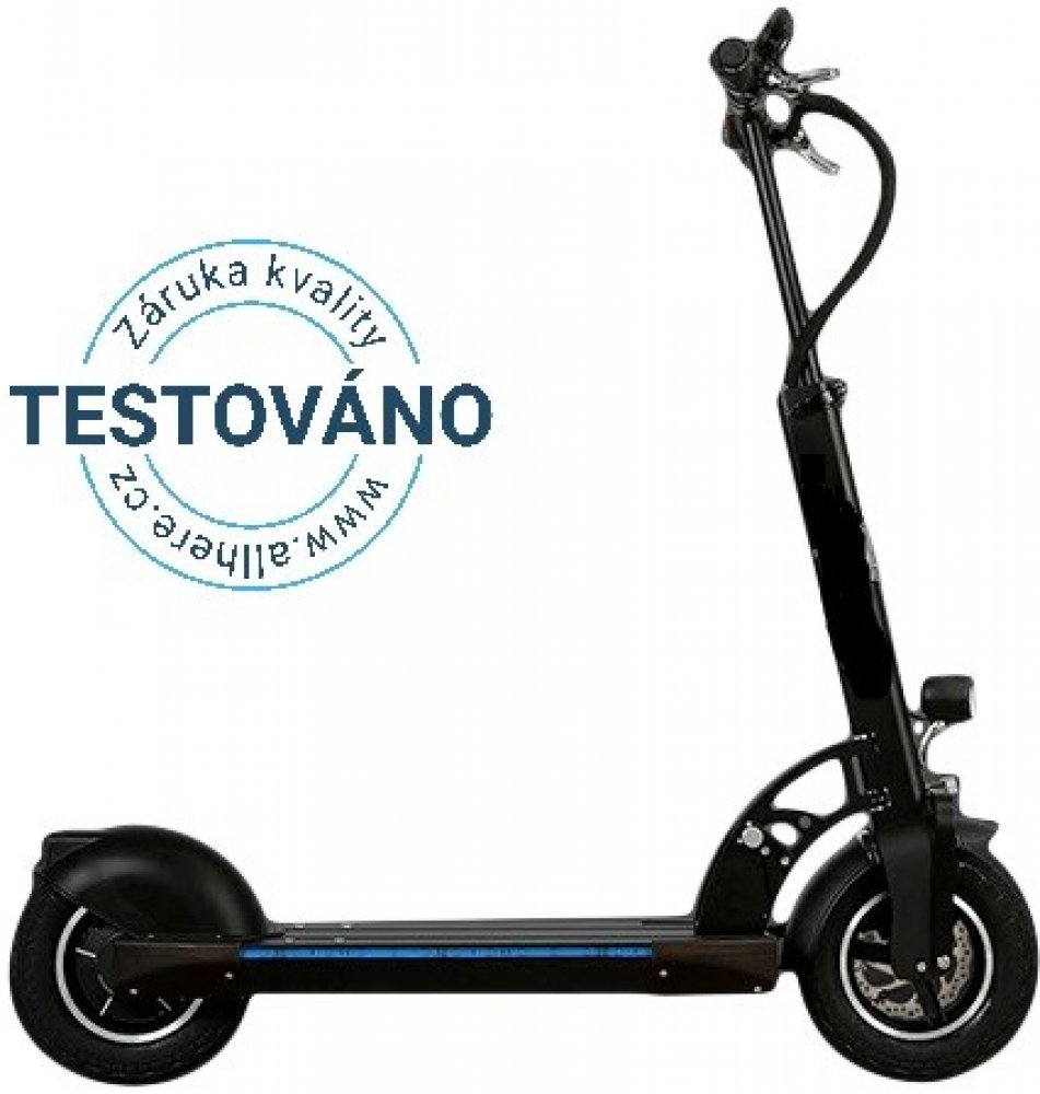Rychlost koloběžky zajišťuje motor ZOUR 4, který dokáže koloběžku rozpohybovat až na neuvěřitelných 45km/h. O brzdy se starají kotoučové disky.