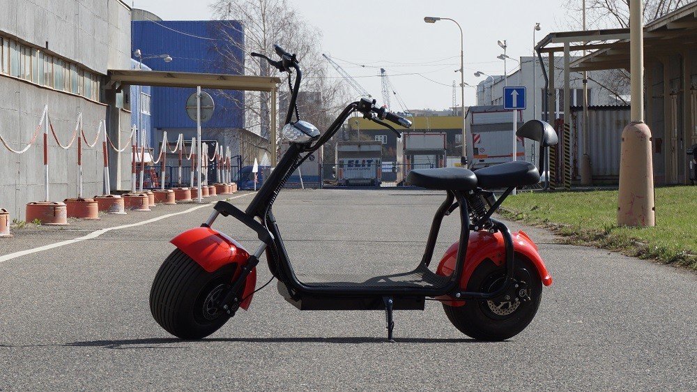 Představujeme Vám stylovou elektrickou HARLEY koloběžku. Svým jednoduchým a přesto stylovým designem přiláká oko nejednoho milovníka silných strojů. Tisíciwattový elektromotor v kole zaručuje nejen čistý ekologický pohon, ale také maximální rychlost 45 km/h. S dojezdem 55-60 km se tento stroj rychle stane Vaším běžným dopravním prostředkem. Dojezd závisí na váze, terénu a stylu jízdy. Široko plášťová kola se postarají o perfektní stabilitu a hravě odpruží nerovnosti na cestě, ať už se jedná o silnici nebo polní cestu. K tomu Vám napomůže také přední odpružená vidlice.
