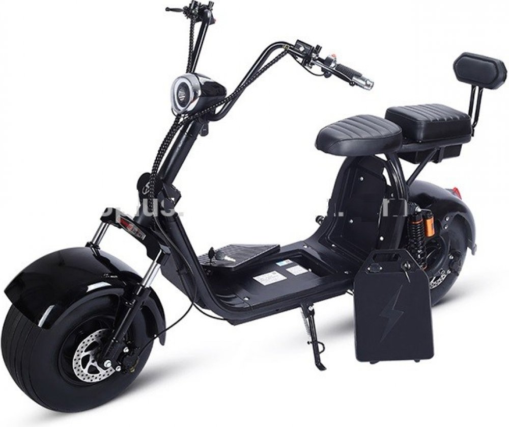 Svým jednoduchým a přesto stylovým designem přiláká oko nejednoho milovníka silných strojů. Tisíciwattový elektromotor v kole zaručuje nejen čistý ekologický pohon, ale také maximální rychlost 45-50km/h. S dojezdem 55-60 km se tento stroj rychle stane Vaším běžným dopravním prostředkem. Široko plášťová kola se starají o perfektní stabilitu a hravě odpruží nerovnosti na cestě, ať už se jedná o silnici či polní cestu. K tomu Vám také napomůže přední i zadní odpružená vidlice.