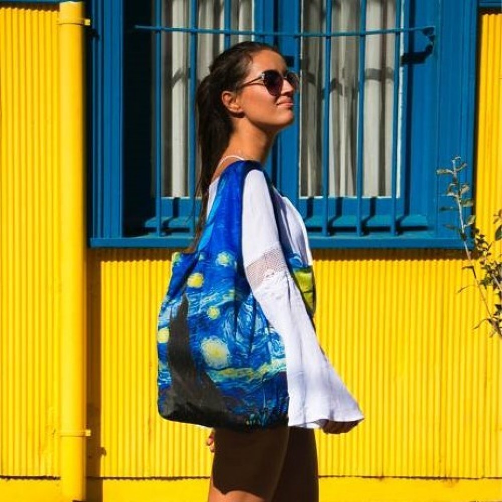 ECOZZ Gold Collection - Vincent van Gogh - Starry Night - Ecozz jsou originální módní tašky s širokou variabilitou provedení. Návrhy pocházejí od vybraných českých designérů, vyznačují se vysokou nosností, výdrží a praktičností. Šířka tašky je 46 cm a výška 41 cm. Každá taška unese až 20 kg obsahu, je nepromokavá, vypratelná a snadno skladovatelná. Můžete ji neustále nosit u sebe složenou a vytáhn...