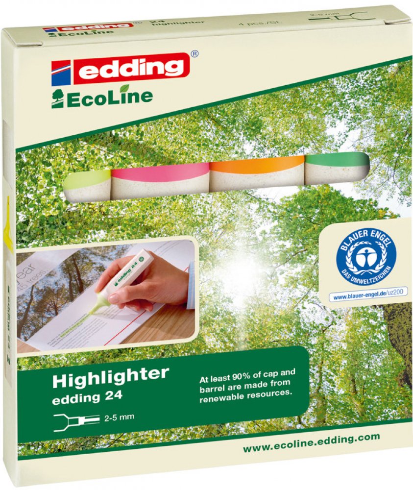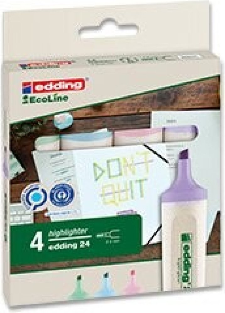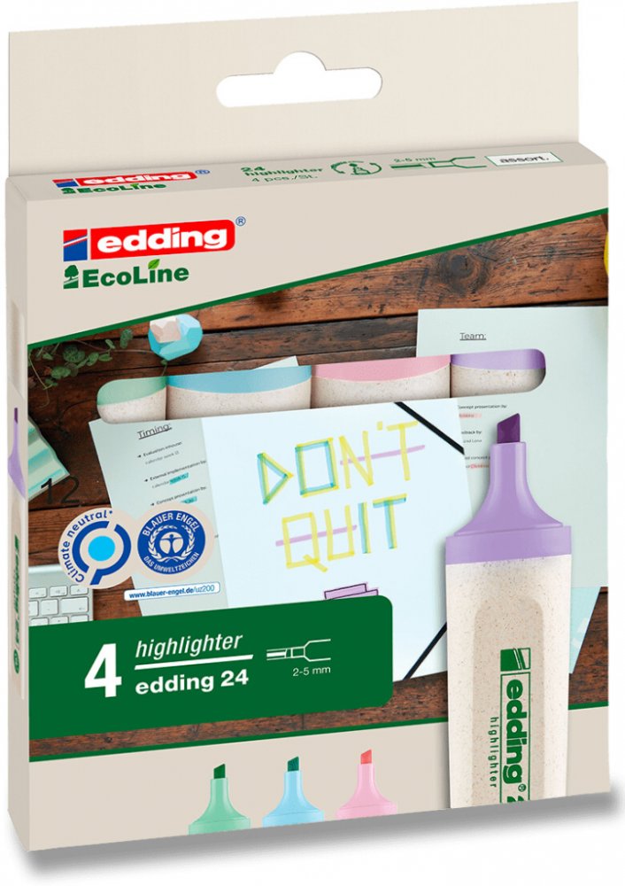 Permanentní ekologický zvýrazňovač z řady Ecoline pro jasné značení textových pasáží a poznámek na papíru. Nejméně 70 % celkového plastu použitého v popisovači je vyrobeno z recyklovaného materiálu. Lze jej znovu naplnit inkoustem Edding HTK 25 a použít několikrát, což je nejen ekologické, ale také ekonomicky výhodné. Neonové neprosákavé inkousty na bázi vody jsou dostupné v několika barvách. Inko...