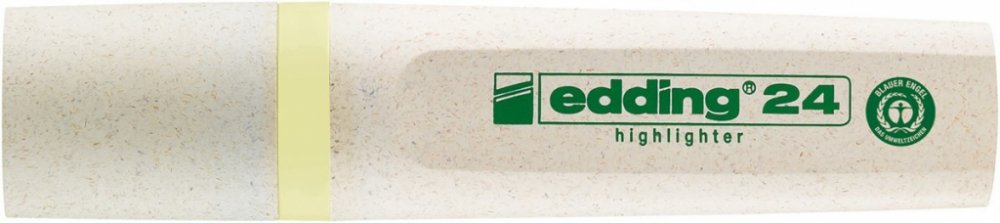Znovu naplnitelný zvýrazňovač edding 24 z ekologické řady edding EcoLine - nově i v pastelových barvách. První a dosud jediný zvýrazňovač certifikovaný uznávanou ekologickou značkou Blue Angel. Víčko a tělo zvýrazňovače je vyrobeno z více než 90 % z obnovitelného zdroje, jakým je cukrová třtina. Vlákna tamponu jsou vyrobena z recyklovaných materiálů. Zvýrazňovač je navíc znovu naplnitelný (inkoust...