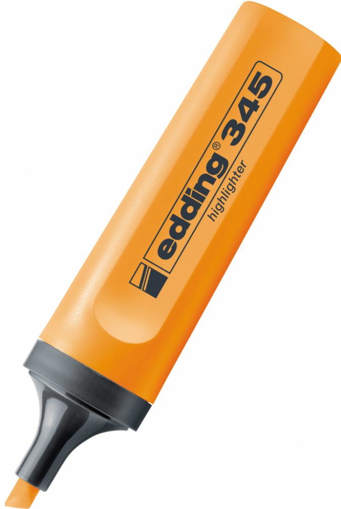 Edding 345 pro jasné vyznačení textových pasáží a poznámek na papíru. Má zkosený hrot, jehož výhodou je proměnlivá šířka vyznačování. Můžete s ním tak vytvářet od tenkých tahů po široké.