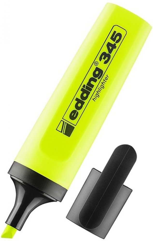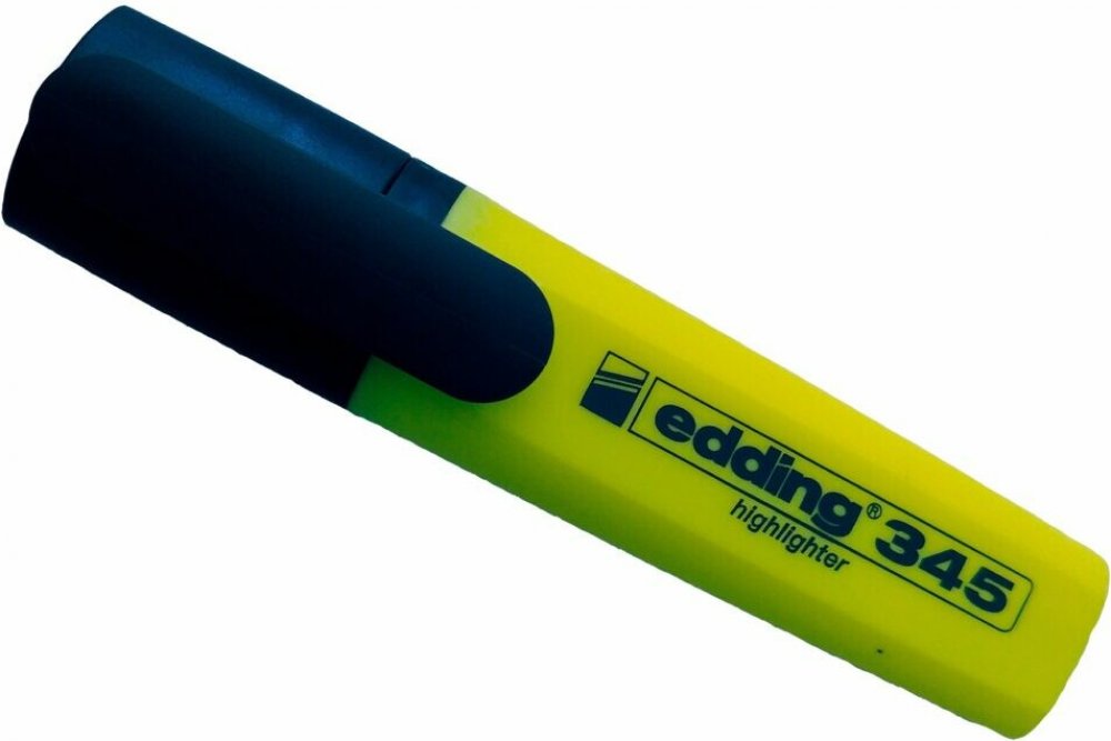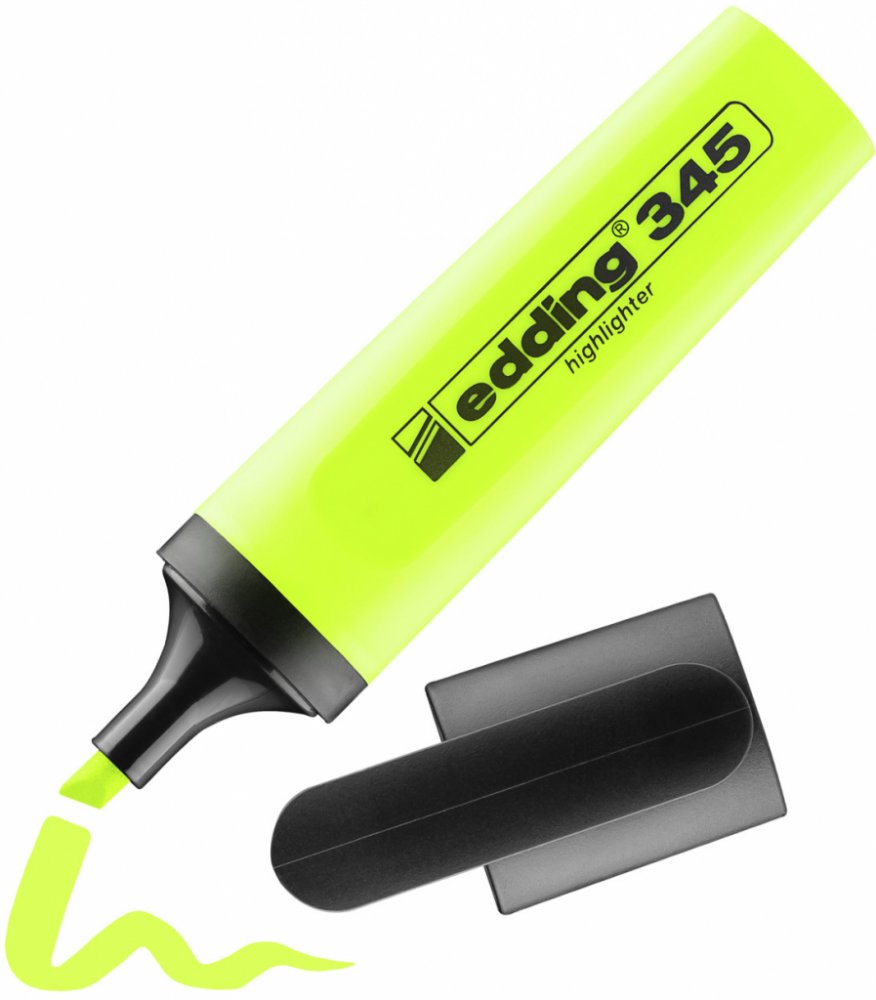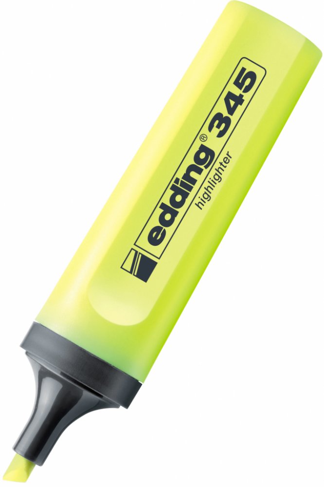 Edding 345 pro jasné vyznačení textových pasáží a poznámek na papíru. Má zkosený hrot, jehož výhodou je proměnlivá šířka vyznačování. Můžete s ním tak vytvářet od tenkých tahů po široké.