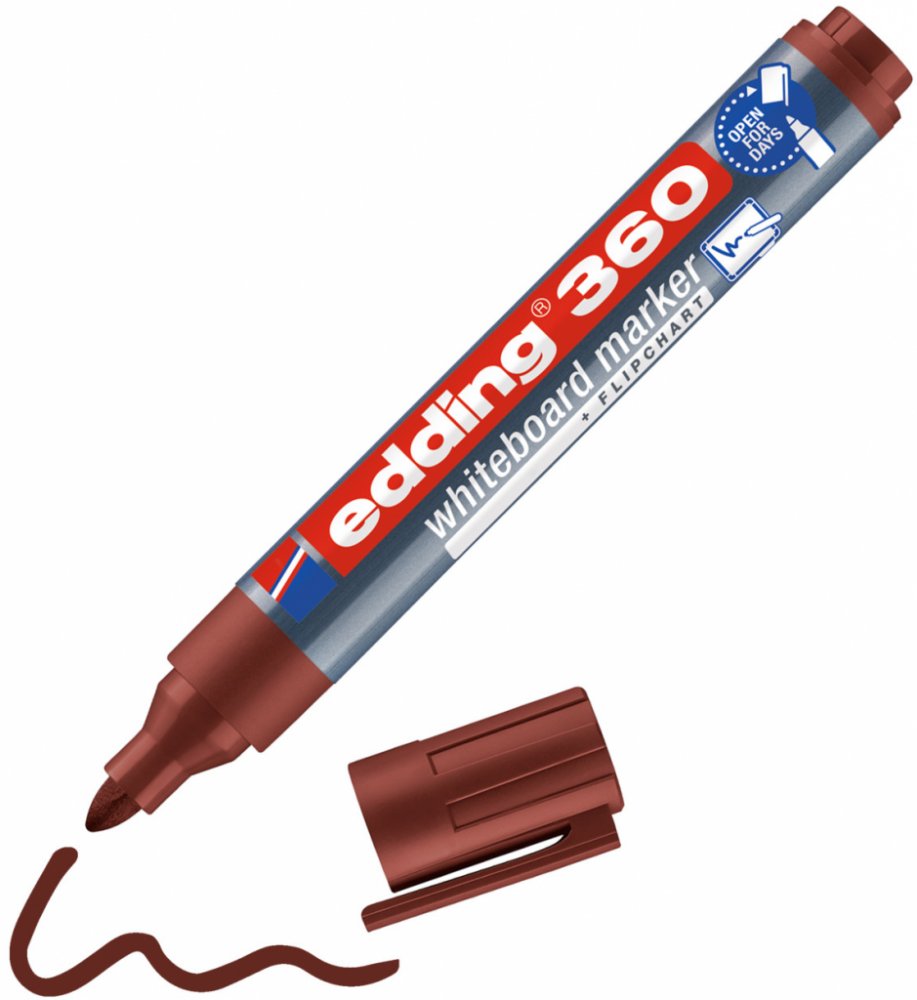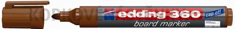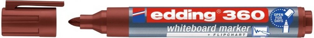 S kvalitním popisovačem na bílé tabule Edding 360 můžete psát také na flipcharty, na hladké - skleněné, melaminové nebo emailové povrchy. Fix je rychleschnoucí a má kulatý hrot (1,5-3 mm). Pokud zapomenete popisovač otevřený, nemusíte se díky technologii „cap-off“ obávat, že by hrot zaschl (lze nechat bez víčka i několik dní - dle normy ISO 554).