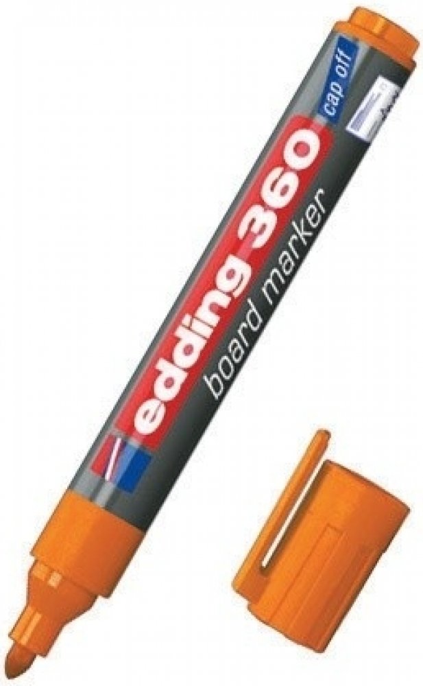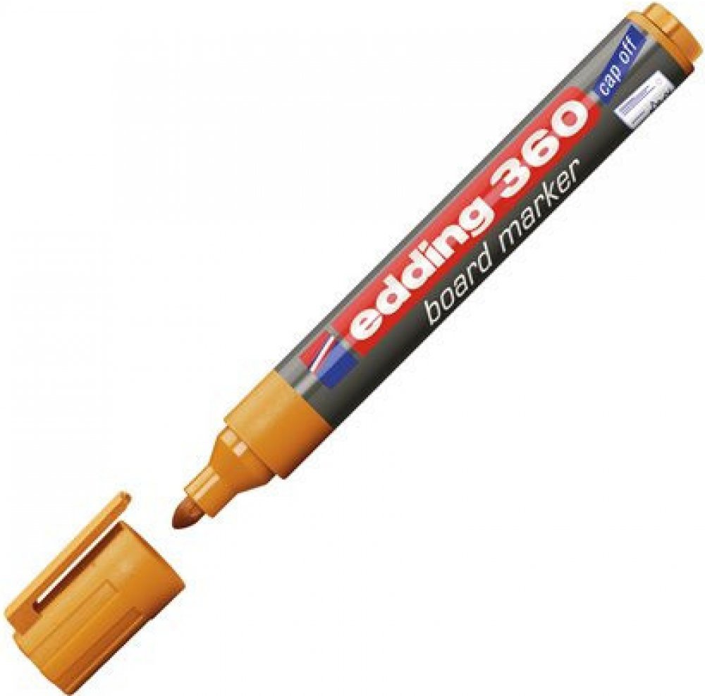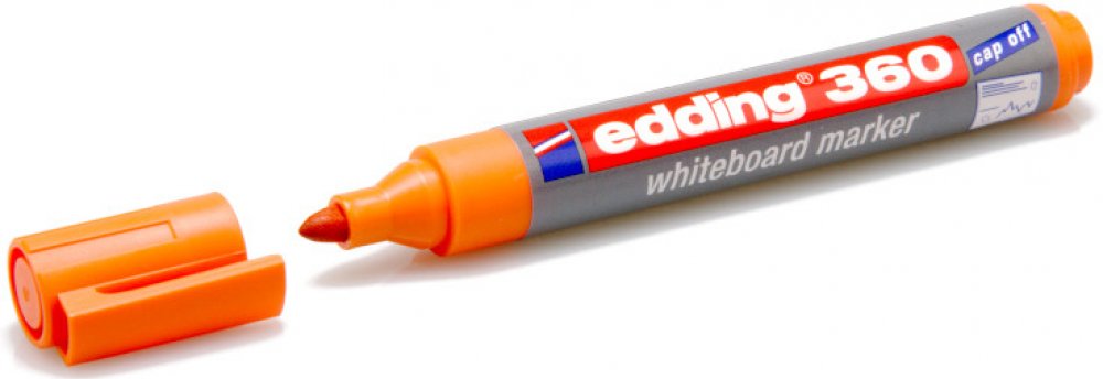 Tabulový popisovač Edding 360 je vybaven kulatým hrotem. Popisovač na bílé tabule obsahuje inkoust se slabým zápachem a je znovu naplnitelný. Lze ponechat až několik dnů bez nasazeného uzávěru, aniž by hrot zaschl.
