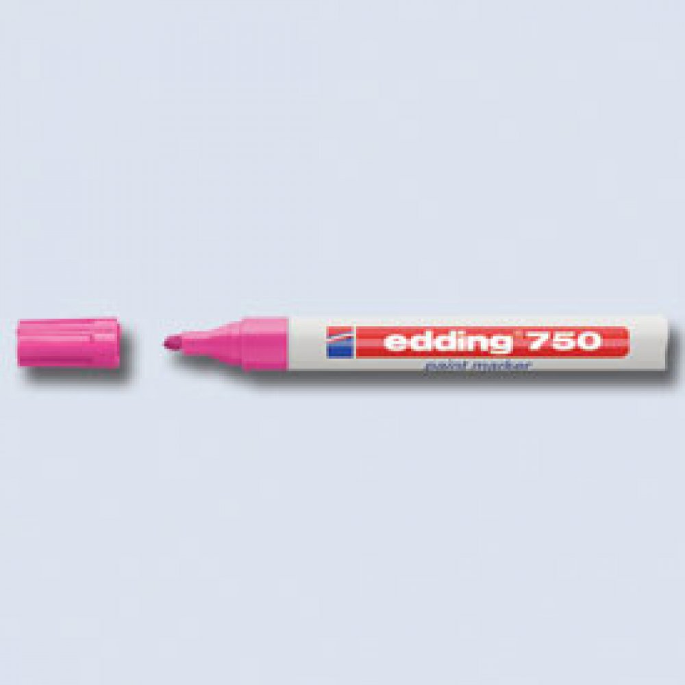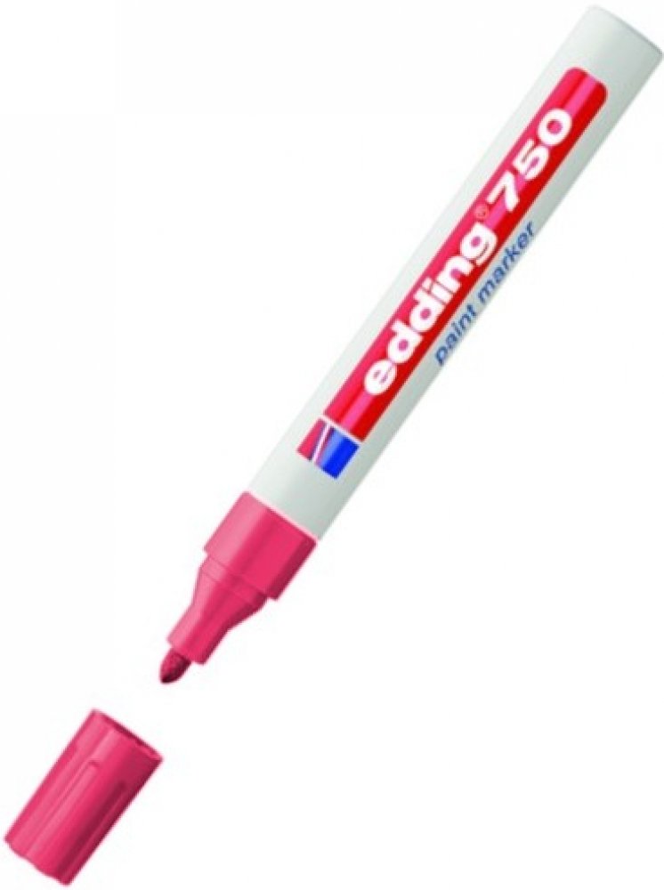Lakový popisovač Edding 750 s kulatým hrotem obsahuje permanentní inkoust se slabým zápachem a krycími účinky na způsob laku.