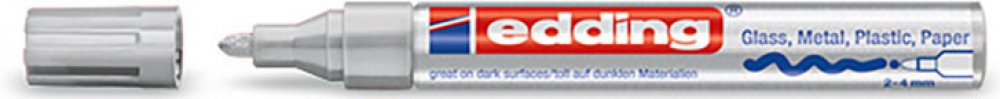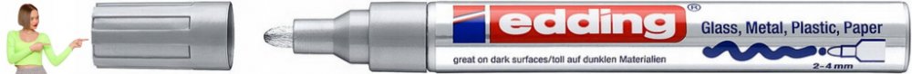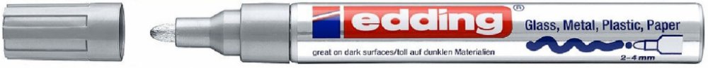 Používá se pro silně krycí značení všech materiálů, jako např. skla, plastu, dřeva a kovu. Edding 750 lakový popisovač je zvláště vhodný pro tmavé a průhledné materiály.