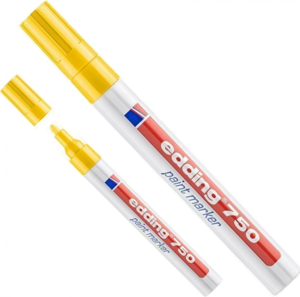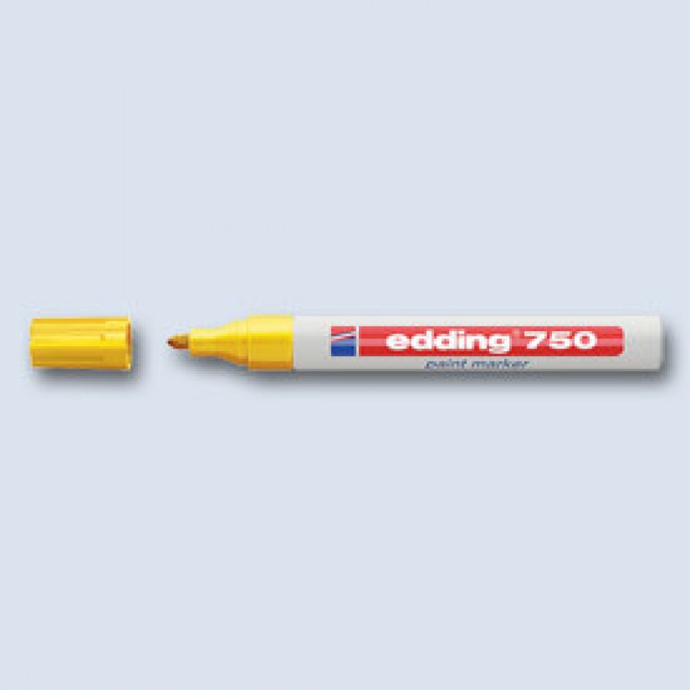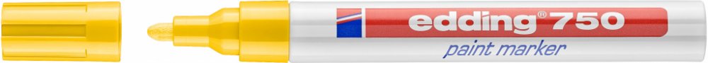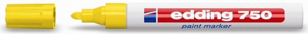 Lakový popisovač Edding 750 s kulatým hrotem obsahuje permanentní inkoust se slabým zápachem a krycími účinky na způsob laku.