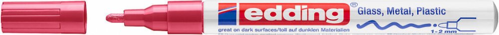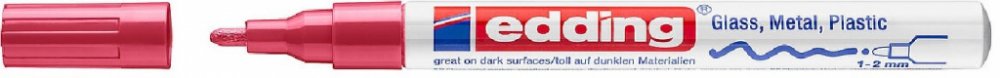 Lakové popisovače Edding mají nejlepší přilnavost, funkčnost a trvanlivost na hladkém suchém povrchu, zvláště vyniknou na tmavých průhledných materiálech.