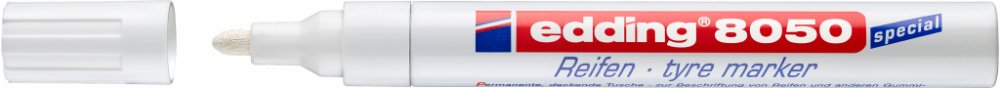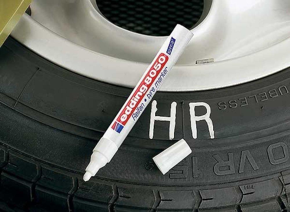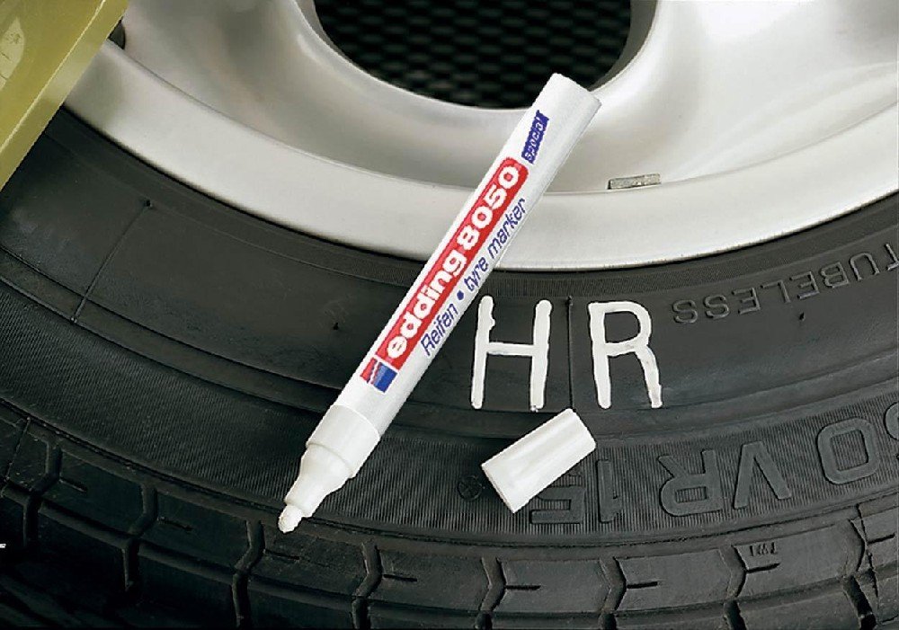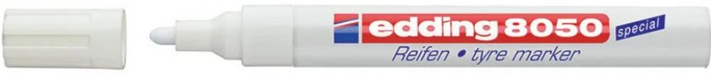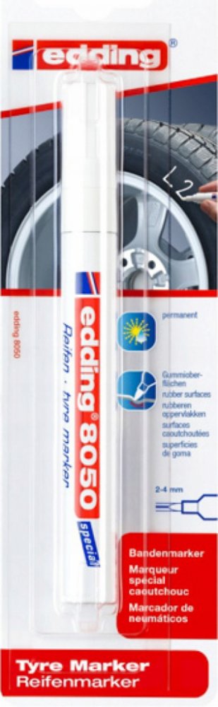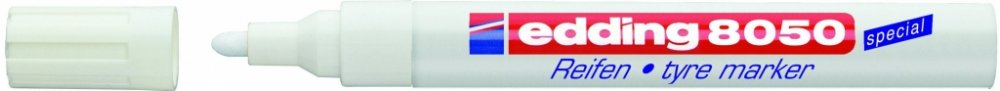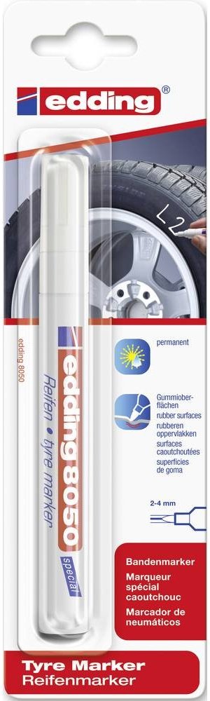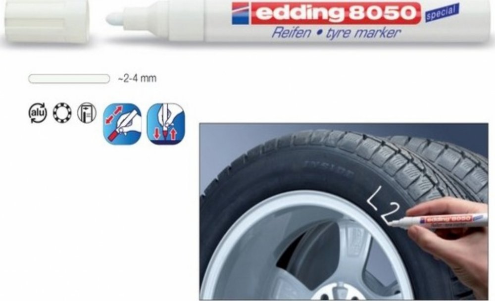 Popisovač na pneumatiky Edding 8050 bude nepostradatelným pomocníkem v každém pneuservisu i v domácnosti. Pomocí tohoto fixu snadno označíte letní a zimní sadu kol. Díky tomu vždy rychle poznáte, kam které kolo patří. Edding 8050 rychle zasychá, je voděodolný a vysoce neprůhledný. Skvěle píše na všechny gumové materiály. Odolný proti opotřebení a extrémně odolný vůči světlu. Pro dobrou viditelnost na tmavém povrchu je tento fix vyráběn v bílé barvě. nízký zápach hliníkové tělo vysoce kvalitní značkový produkt Kulatý hrot