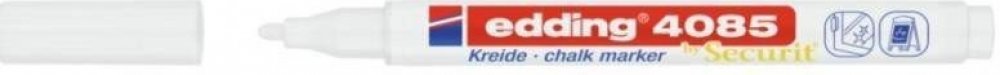 Křídový popisovač edding 4085 je nepermanentní fix ve formě tekuté křídy. Tenký hrot nabízí čistou precizní stopu. Inkoust na bázi vody vyniká vysokou krycí schopností, proto je napsaná stopa velmi dobře vidět. Křídový popisovač lze využít k psaní na okna, skla, plexiskla, zrcadla a tmavé tabule. Inkoust se dá smýt ze všech neporézních materiálů vlhkým hadříkem. Tekutá křída edding je oblíbená v hotelích, restauracích, barech a zároveň ve sklářském průmyslu. Využívá se také ke zdobení a popisování oken v domácnostech a v kancelářích. Neonové barvy jsou viditelné pod UV světlem. Tok inkoustu je řízen ventilem, a proto je před prvním použitím potřeba popisovač protřepat, sejmout víčko a lehkým pumpováním umožnit inkoustu stéci do hrotu. Skladujte ve vodorovné poloze. Kulatý hrot. Šíře stopy: 1-2 mm.