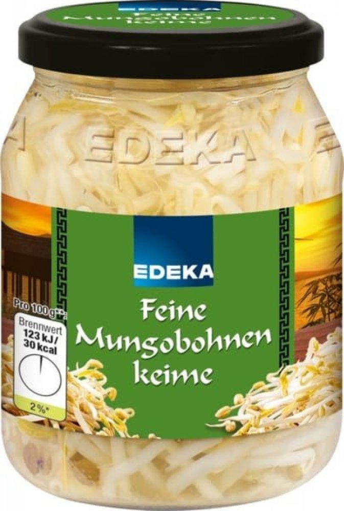 z fazolí mungpůvodní asijskébez sladidlabez přidání aromaseznam přísadSložení: Mung fazole, voda, cukr, sůl, antioxidant: kyselina askorbová;Acidifikátor: kyselina citronová.nutriční informacePrůměrné nutriční hodnotykaždých 100 ml nebo gna porci RM na 100 ml nebo g nebo na porciKalorická hodnota v kJ127.002Kalorická hodnota v kcal31.002Tuk v g0.20 1Tuk, z toho nasycené mastné kyseliny vg0.10 1Sacharidy vg2,601Sacharidy, včetně cukru vg2.503Vlákno vg4.90Vejce bílé vg1.904Sůl v g0.559 RM = referenční množství pro průměrného dospělého (8 400 kJ / 2 000 kcal)Adresa:EDEKA ZENTRALE AG a CO KGD-22291 Hamburg 5035296
